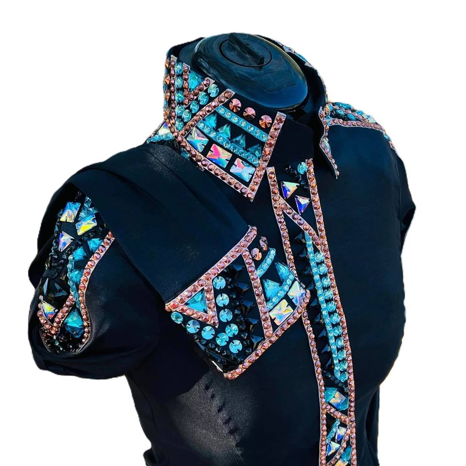เสื้อเชิ้ตคาวเกิร์ลทำมือสำหรับการแสดงสไตล์ตะวันตก ทรงเอวสูง ปิดด้วยซิป ผ้าทาฟเฟต้า ระบายอากาศได้ดี ยืดหยุ่น เหมาะสำหรับการขี่ม้า