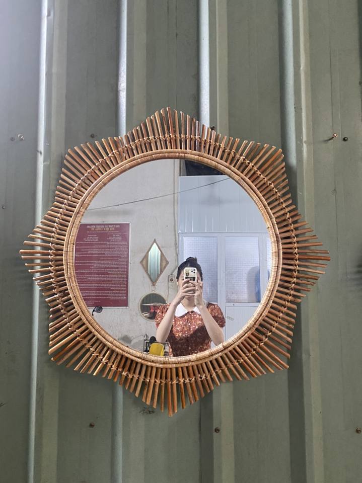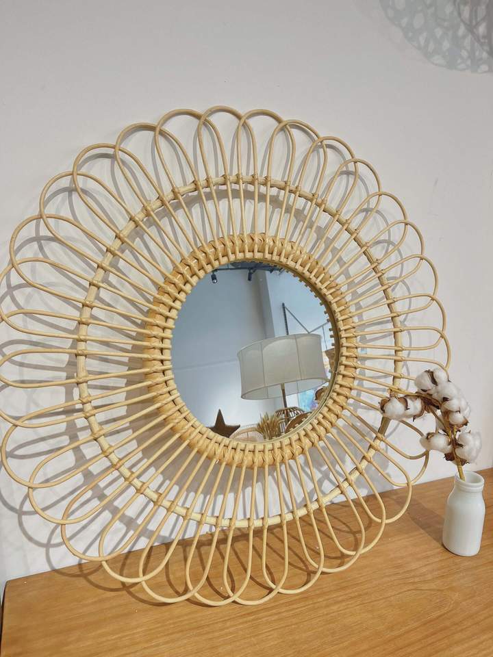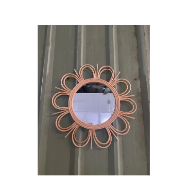 งานฝีมือแฮนด์เมดโต๊ะเครื่องแป้งรูปดอกไม้ดวงอาทิตย์ที่สวยงามขนาดใหญ่ทรงกลมสำหรับตกแต่งบ้านหวายไม้สานวิลโลว์กรอบกระจกหวาย