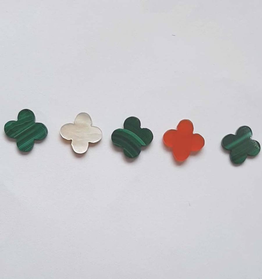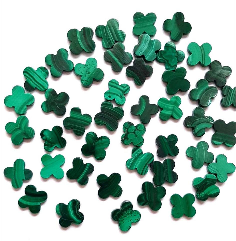 งานฝีมือทำด้วยมือหินแกะสลักมาลาไคต์อัญมณีรูปโคลเวอร์ที่ดูดีที่สุดสำหรับเทศกาลฤดูร้อน