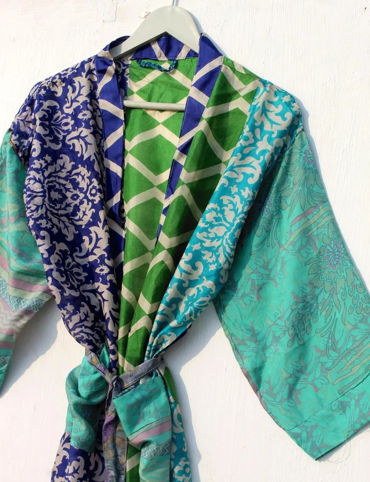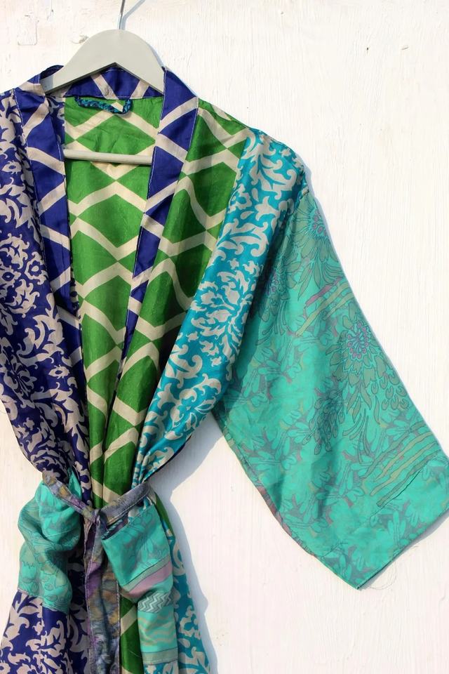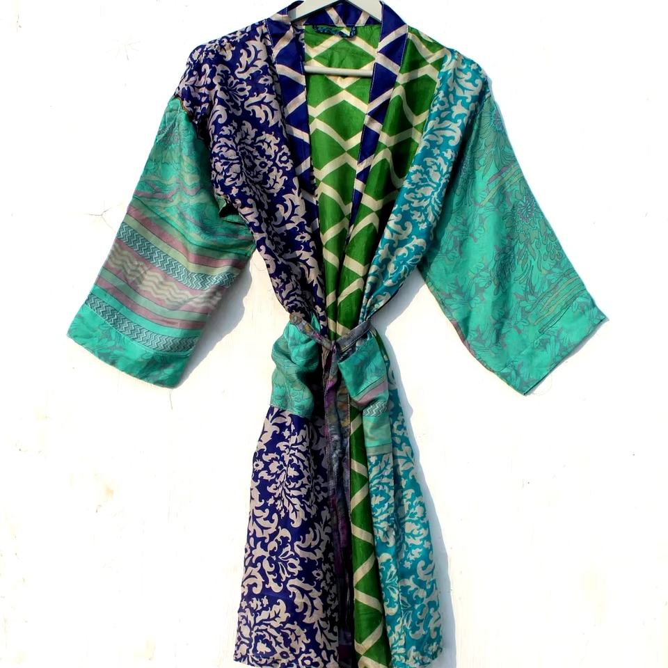 ชุดคลุมกิโมโนผ้าไหมเครปแฮนด์เมดสำหรับผู้หญิงชุดนอนผ้าชีฟองแสนสบายหรูหราสำหรับฤดูร้อน