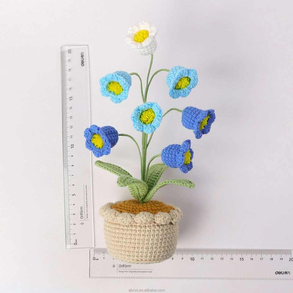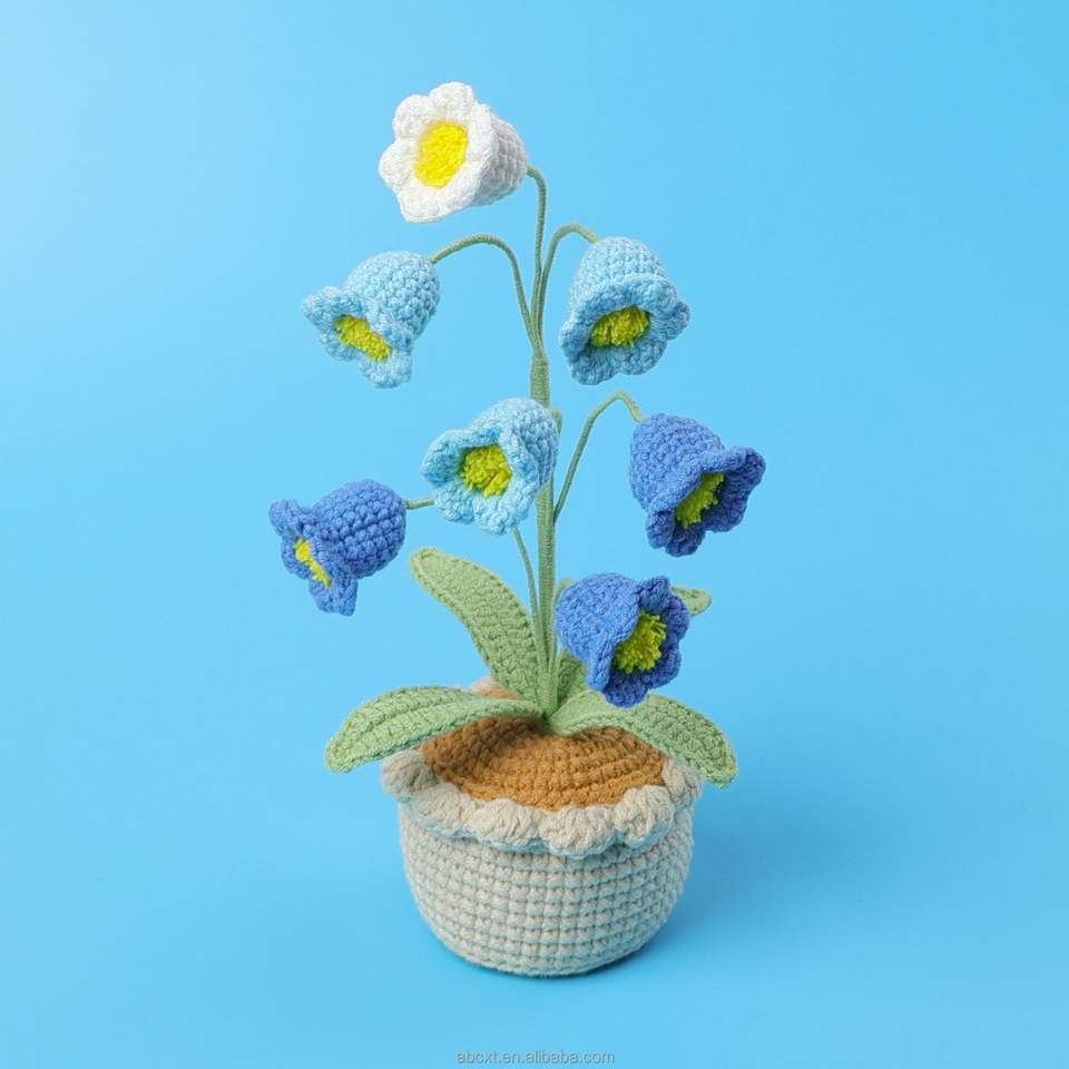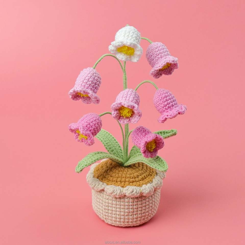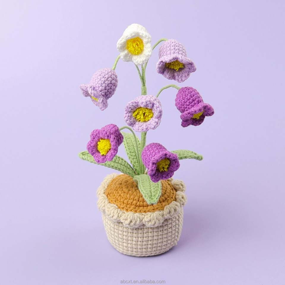 ดอกลิลลี่วัลเลย์ 7 หัว ถักโครเชต์ทำมือ ต้นไม้ประดิษฐ์ในกระถาง สำหรับตกแต่งโต๊ะในวันคริสต์มาส ฮาโลวีน อีสเตอร์
