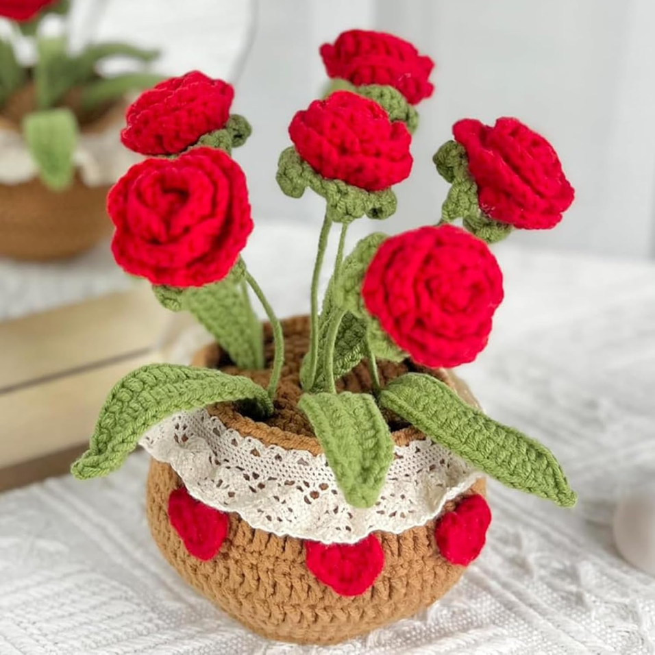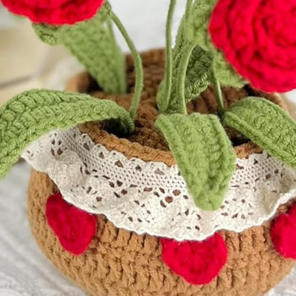 ดอกไม้ถักโครเชต์แฮนด์เมดสำหรับใส่กระถางดอกไม้ประดิษฐ์เป็นของขวัญให้เพื่อนสมบูรณ์แบบสำหรับตกแต่งบ้านผลิตในเวียดนาม