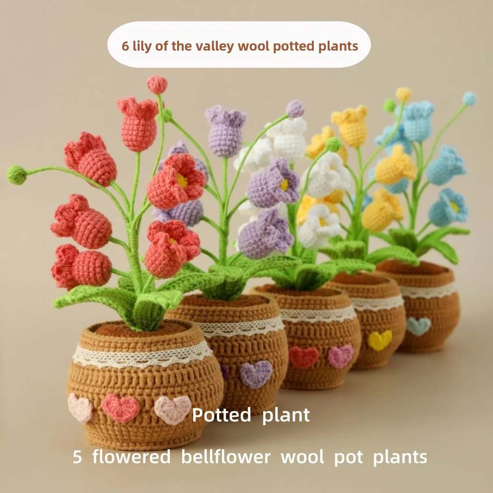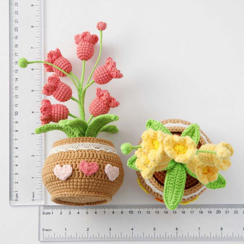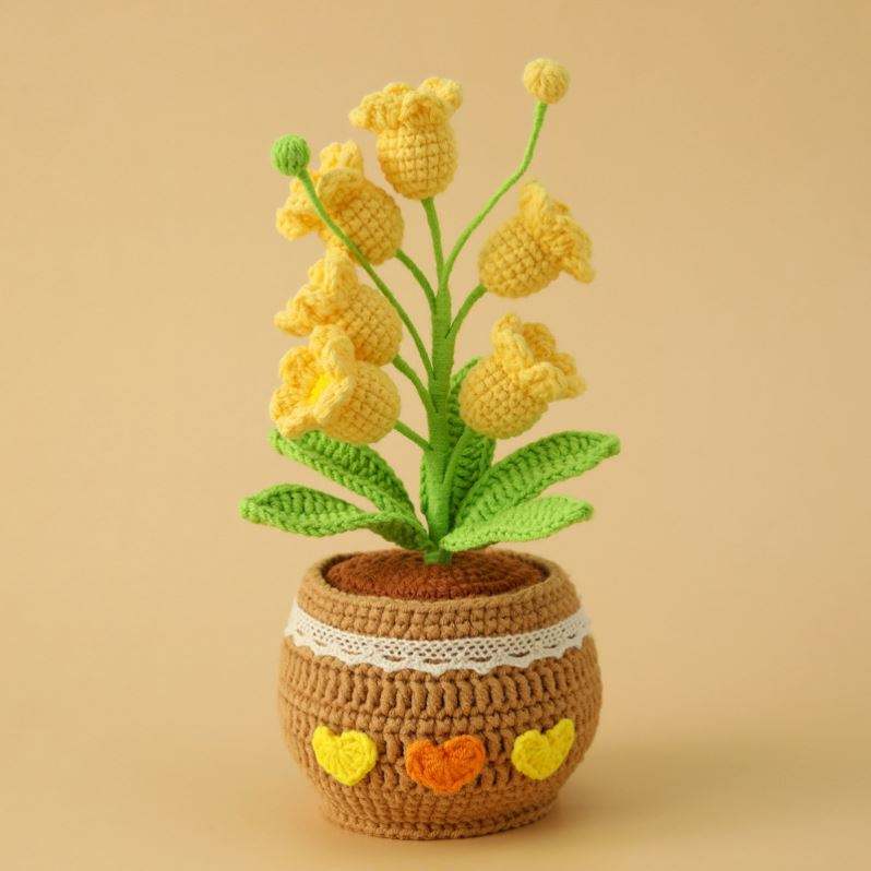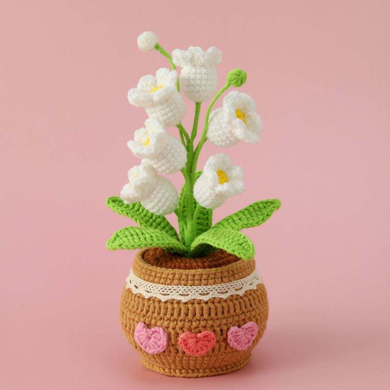 กระถางดอกลิลลี่วัลเลย์ถักโครเชต์ทำมือสำหรับตกแต่งบ้าน