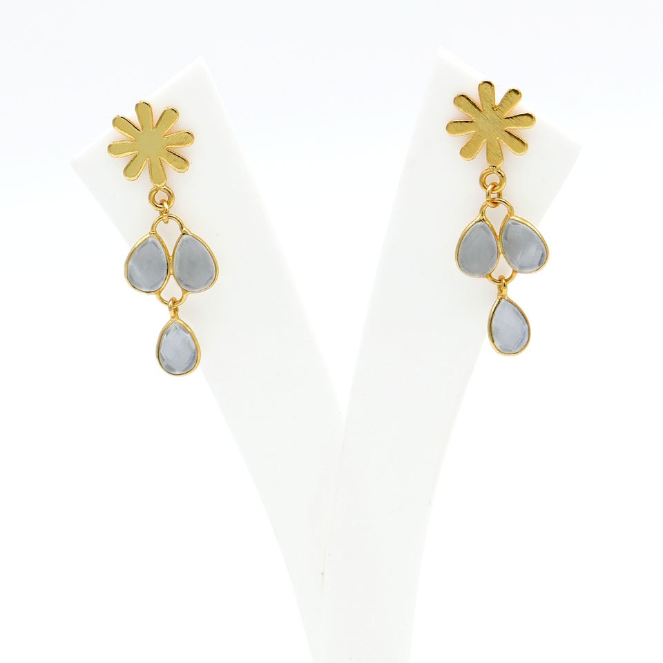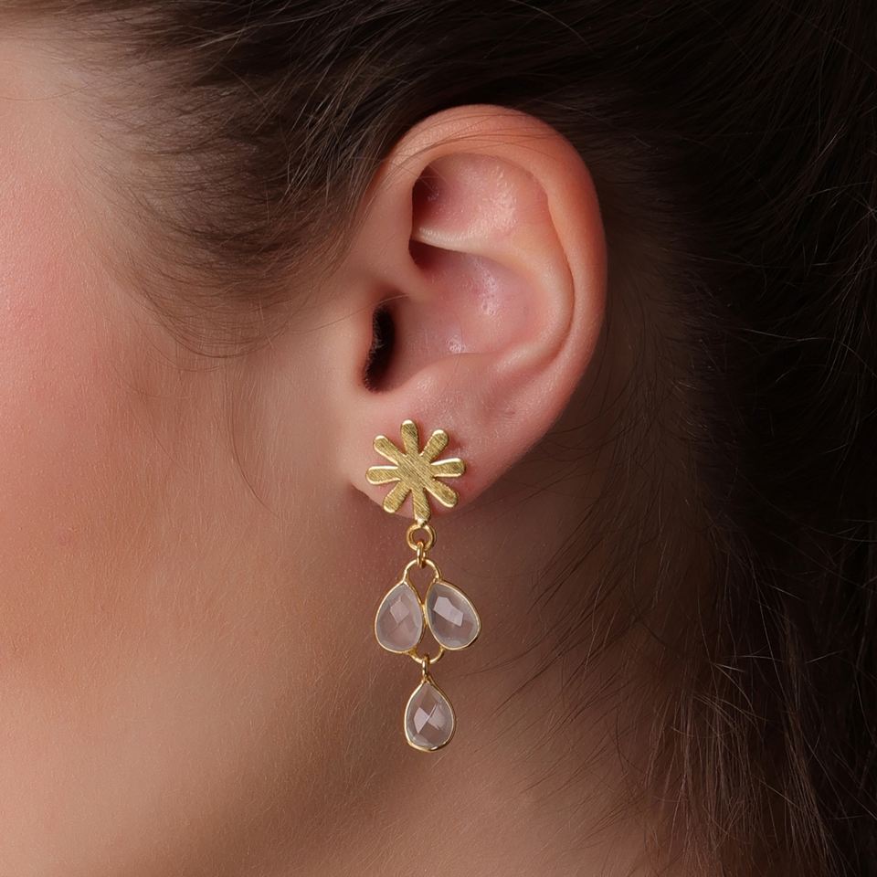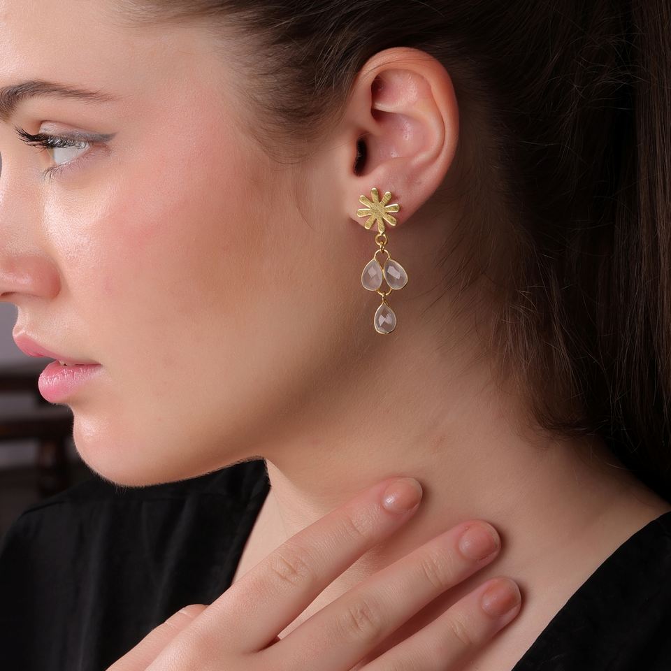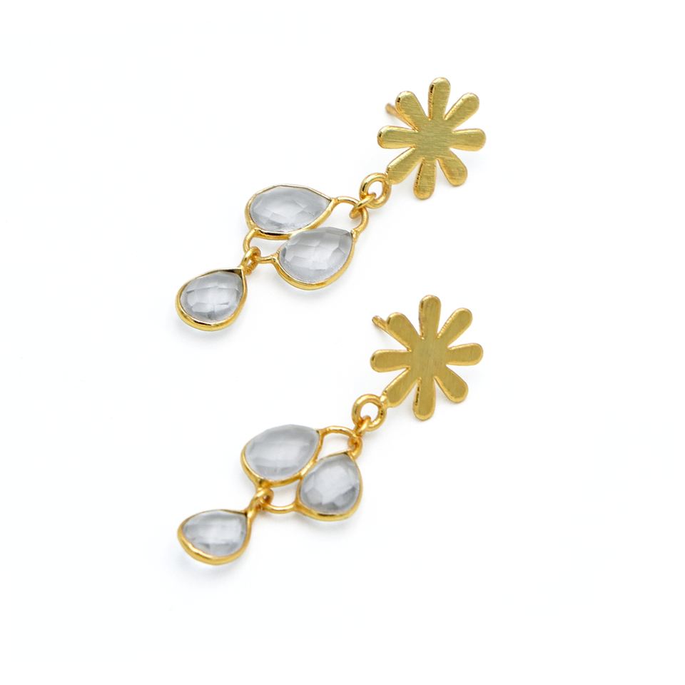 ต่างหูคริสตัลทำด้วยมือแบบห้อยประดับด้วยทองเหลืองชุบทอง18K เครื่องประดับหินใสสำหรับงานแต่งงานสุดหรูหรา