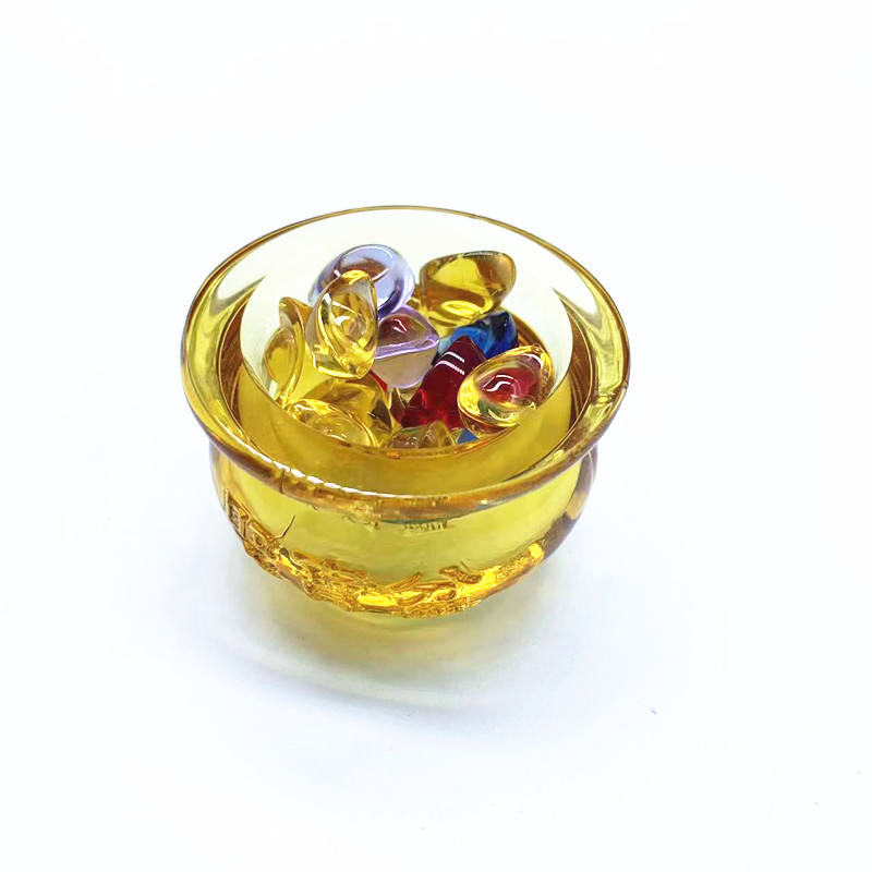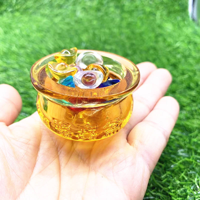 แฮนด์เมดแก้วคริสตัลอ่างสมบัติทองคํากับหยวนเปาโชคดีความมั่งคั่งความสําเร็จของสะสมตกแต่งฮวงจุ้ย