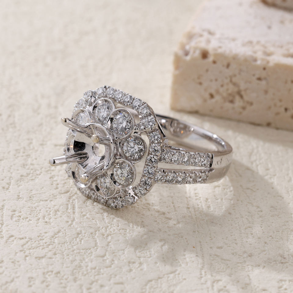 แหวนทองขาว18K ทำด้วยมือปรับแต่งได้ทำด้วยมือแหวนเพชรสีขาวธรรมชาติติดกึ่งละเอียดอ่อนเครื่องประดับงานแต่งคุณภาพระดับพรีเมียม