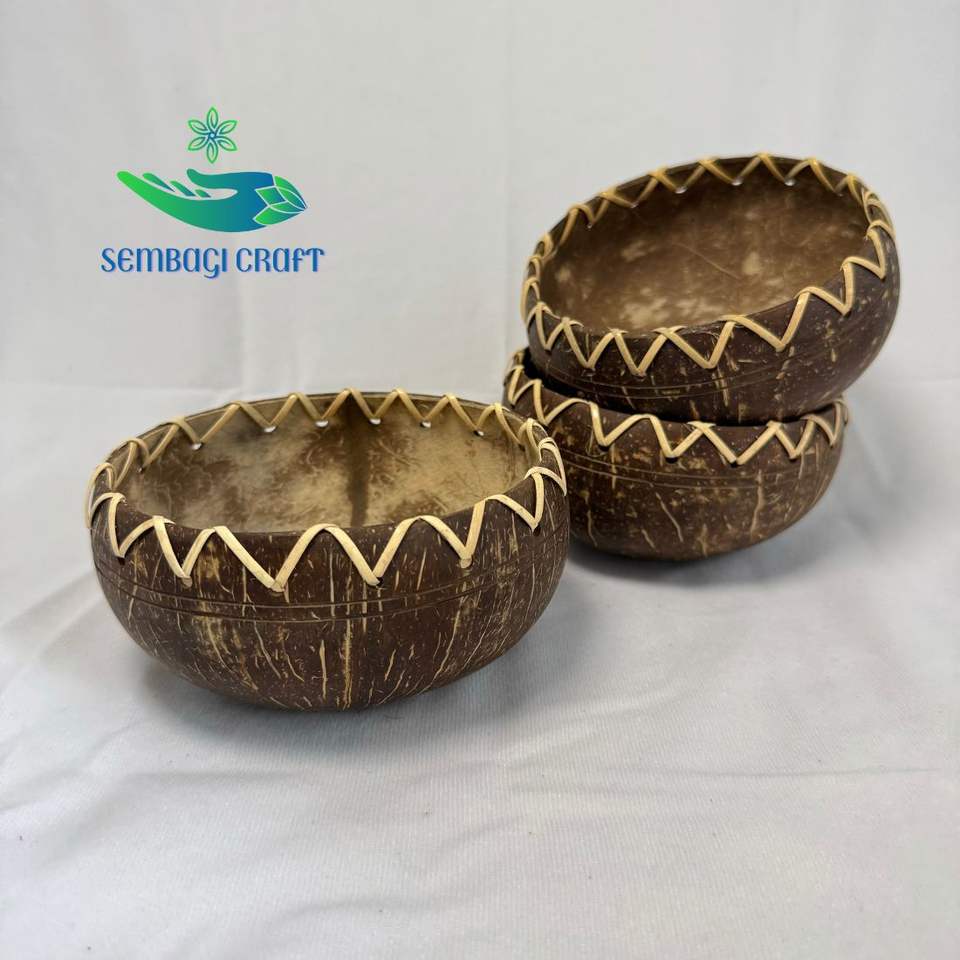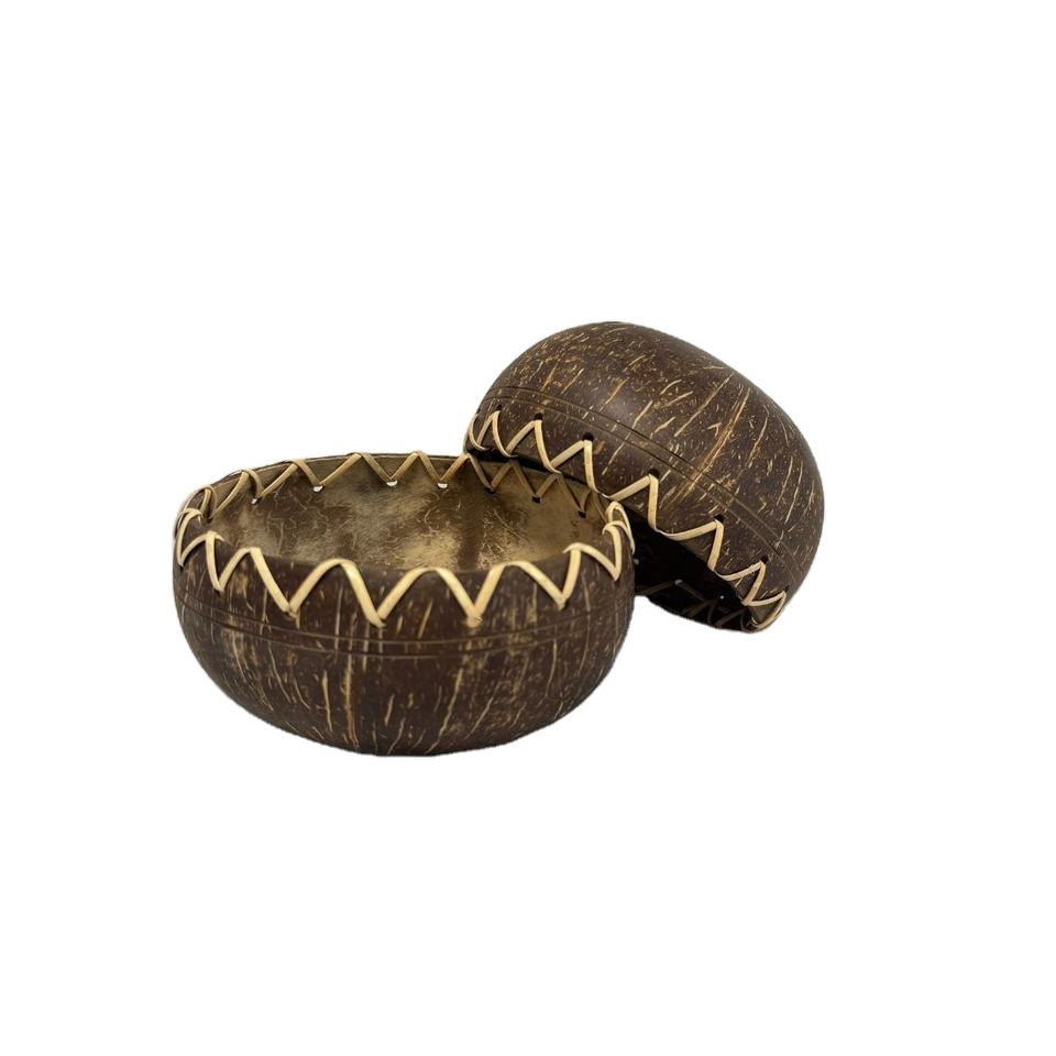 ชามกะลามะพร้าวแบบทำด้วยมือสำหรับเก็บอาหารทรงกลมพร้อมหวายผสมอาหารปลอดภัยเกรดอาหาร