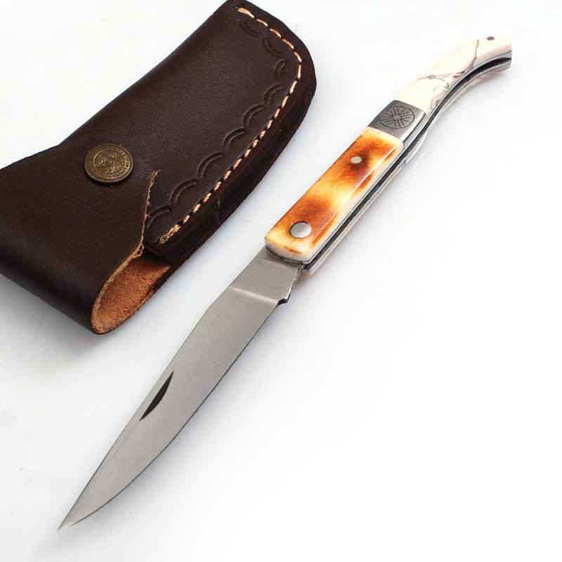 มีดพับแบบพกพาดามัสกัสทำด้วยมือพร้อมปลอกหนังเขากวางสำหรับ2025กลางแจ้ง
