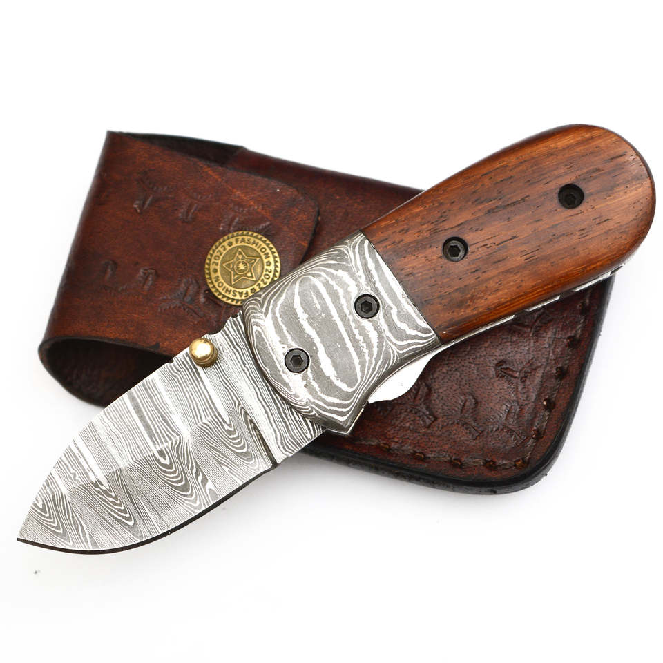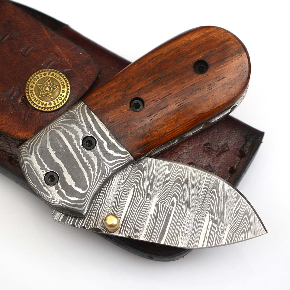 มีดพับใบมีดเหล็กดามัสกัสเกรดอุตสาหกรรมคุณภาพสูง งานแฮนด์เมด ด้ามไม้โรสวูด ดีไซน์ใหม่ มีดพกพา EDC