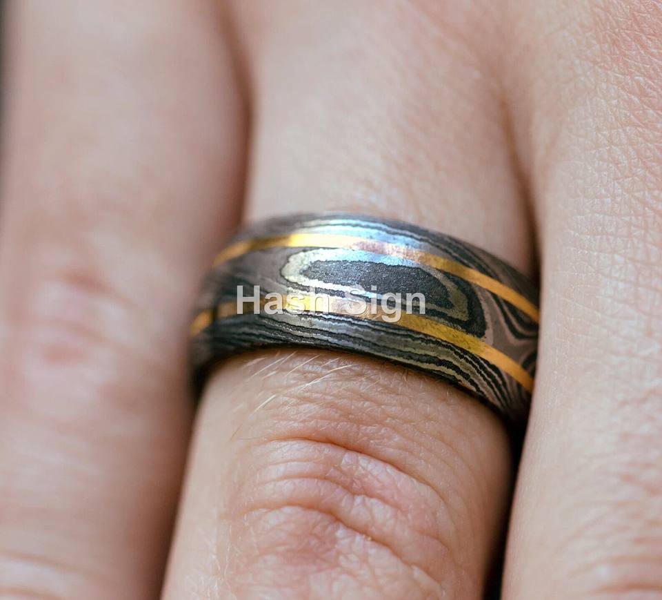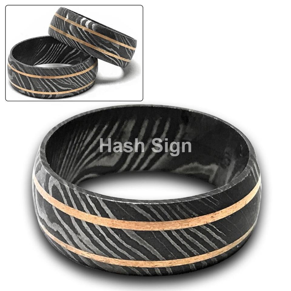 แถบเหล็กดามัสกัสสองแดงแบบทำด้วยมือแบบสั่งทำสายรัดแต่งงานแบบยูนิเซ็กส์ของขวัญคริสต์มาสสไตล์คลาสสิกสำหรับคู่รัก