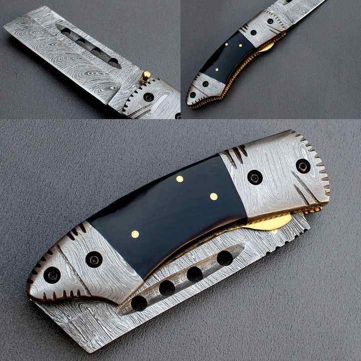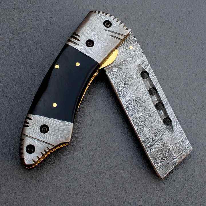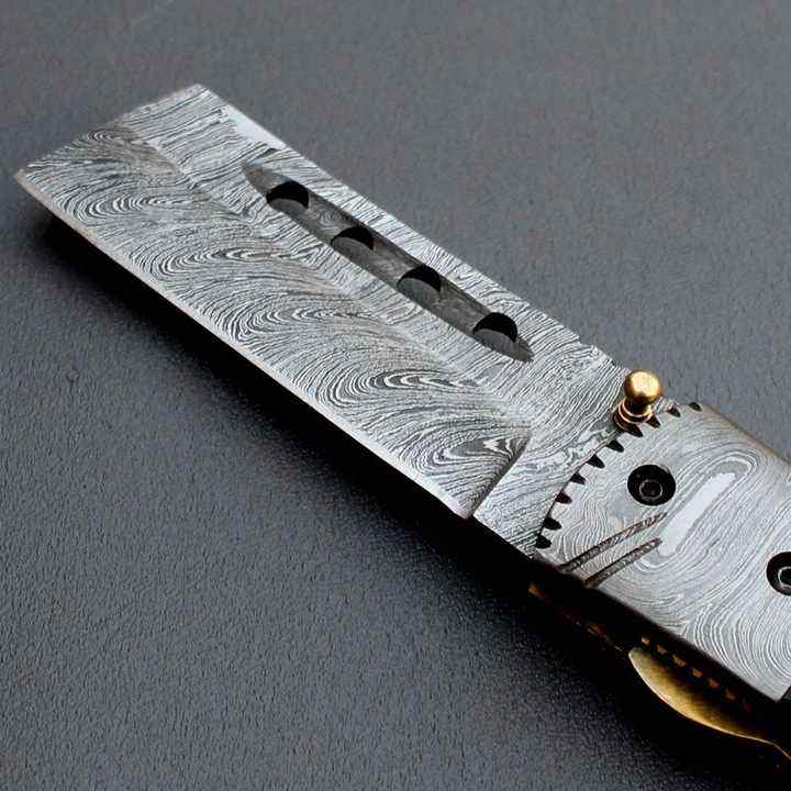 มีดพับเหล็กดามัสกัสทำด้วยมือมีดสำหรับตั้งแคมป์