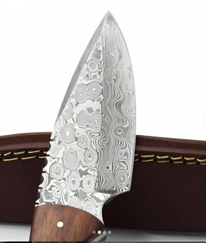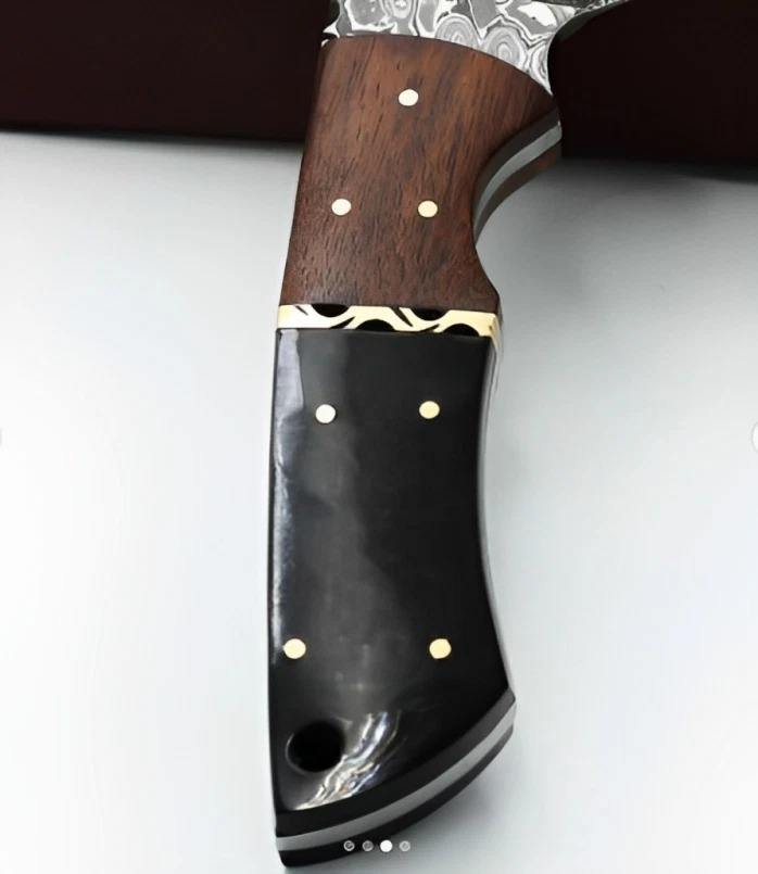 มีดสกินเนอร์เหล็กดามัสกัสทำด้วยมือพร้อมปลอกหนัง OEM รองรับฮอร์นและที่จับไม้กุหลาบ