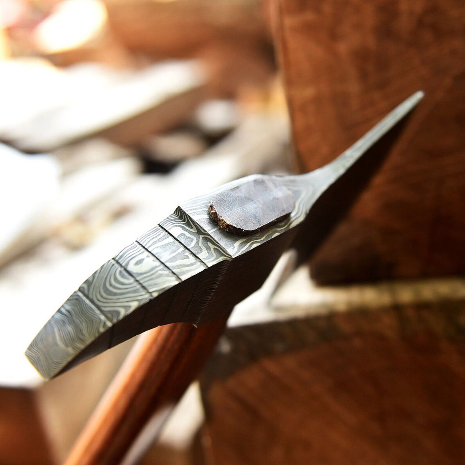 โทมาฮอว์กเหล็กดามัสกัสทำด้วยมือเหล็กกล้าคาร์บอนสูงด้ามจับไม้เกรดอุตสาหกรรมดีไซน์แบบกำหนดเองรับประกัน3ปีสำหรับ DIY