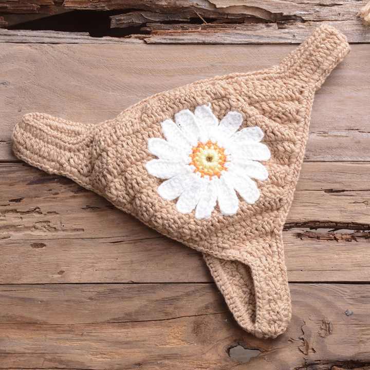 ชุดว่ายน้ำโครเชต์ลายดอกเดซี่ถักมือแบบสั่งทำพิเศษสำหรับผู้หญิง ชุดบิกินี่ 2 ชิ้น ชุดชายหาดไมโครสตริง
