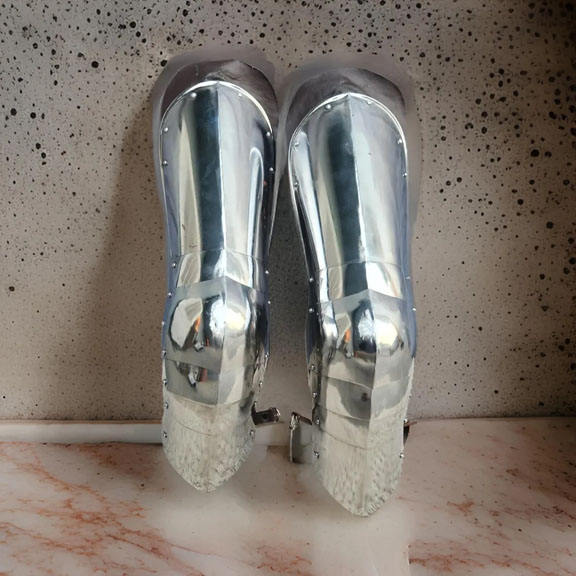 ชุดป้องกันขาเหล็กแบบอัศวินยุคกลางทำด้วยมือเกราะขัดเงาสำหรับนักรบ