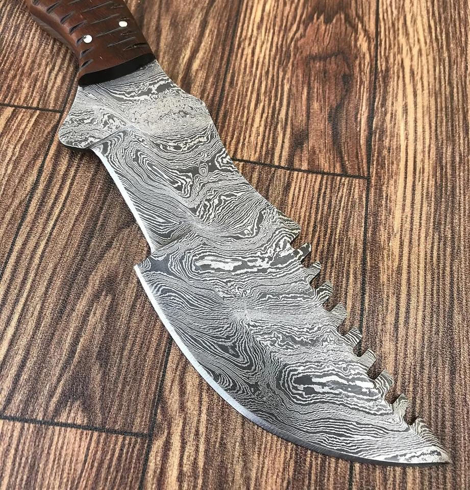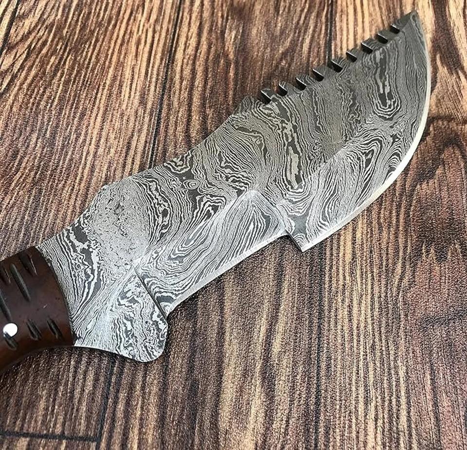 ตัวติดตามใบมีดเหล็กดามัสกัสทำด้วยมือด้ามไม้ที่จับสบายเหมาะสำหรับการล่าสัตว์กลางแจ้ง