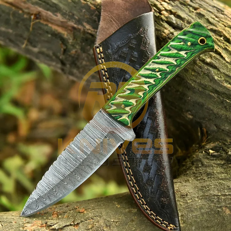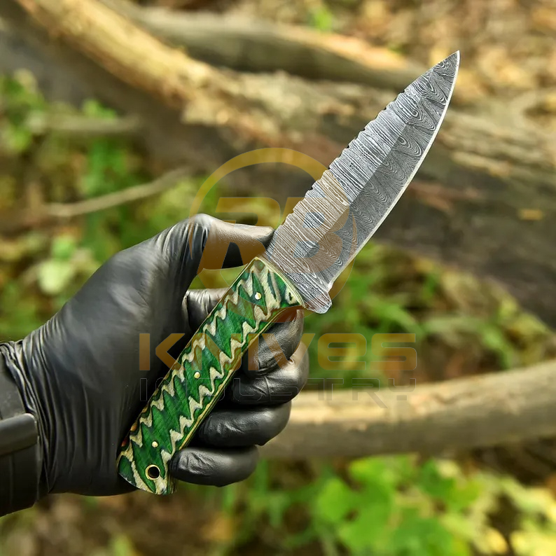 มีดทำมือปรับแต่งได้ตามต้องการ ทำจากเหล็กดามัสกัส สำหรับล่าสัตว์และตั้งแคมป์ ด้ามไม้ พร้อมปลอกหนังสำหรับกิจกรรมกลางแจ้ง รับผลิตแบบ OEM รับประกัน 3 ปี