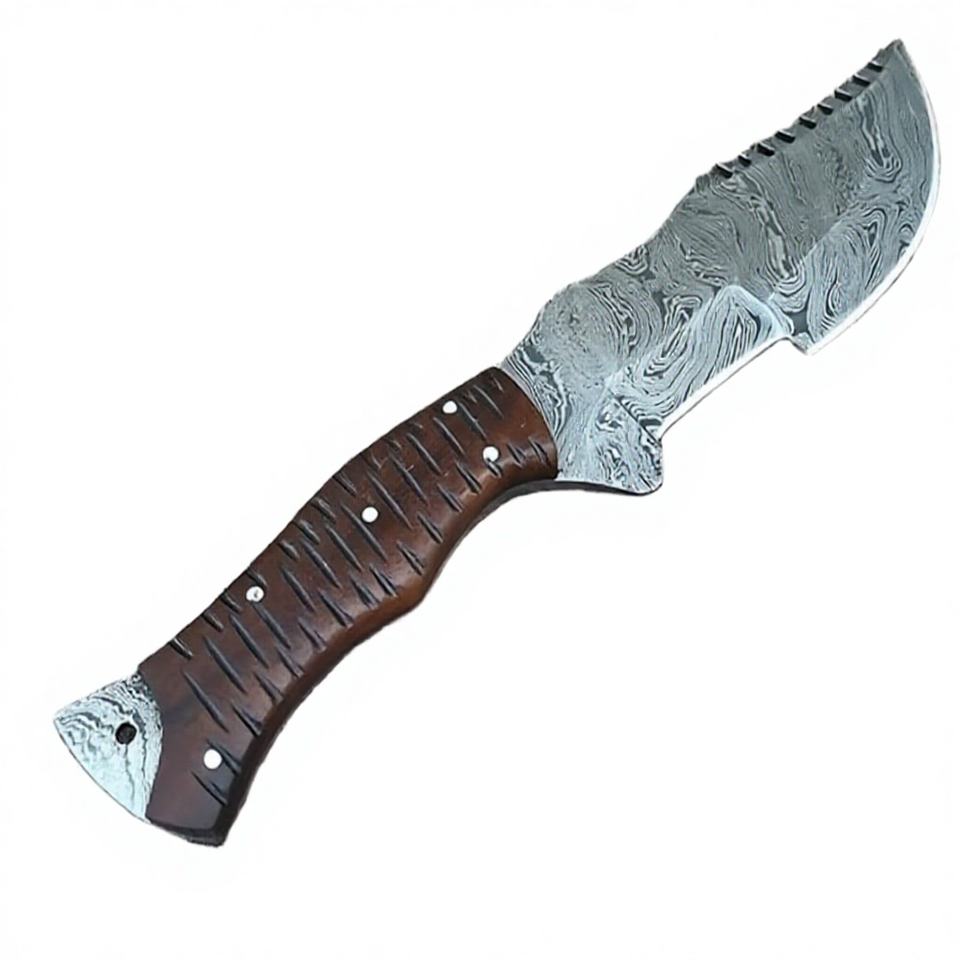 มีดทำมือสแตนเลสแท้ลายดามัสกัส ใบมีดตรง ด้ามจับแบบตรง ใช้งานได้หลากหลาย พกพาสะดวก เหมาะสำหรับการล่าสัตว์และตั้งแคมป์ สีโรส