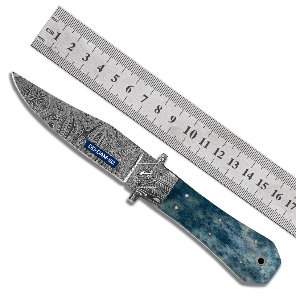 Handle Material:Damascus Steel Bolsters and Dyed Camel Bone