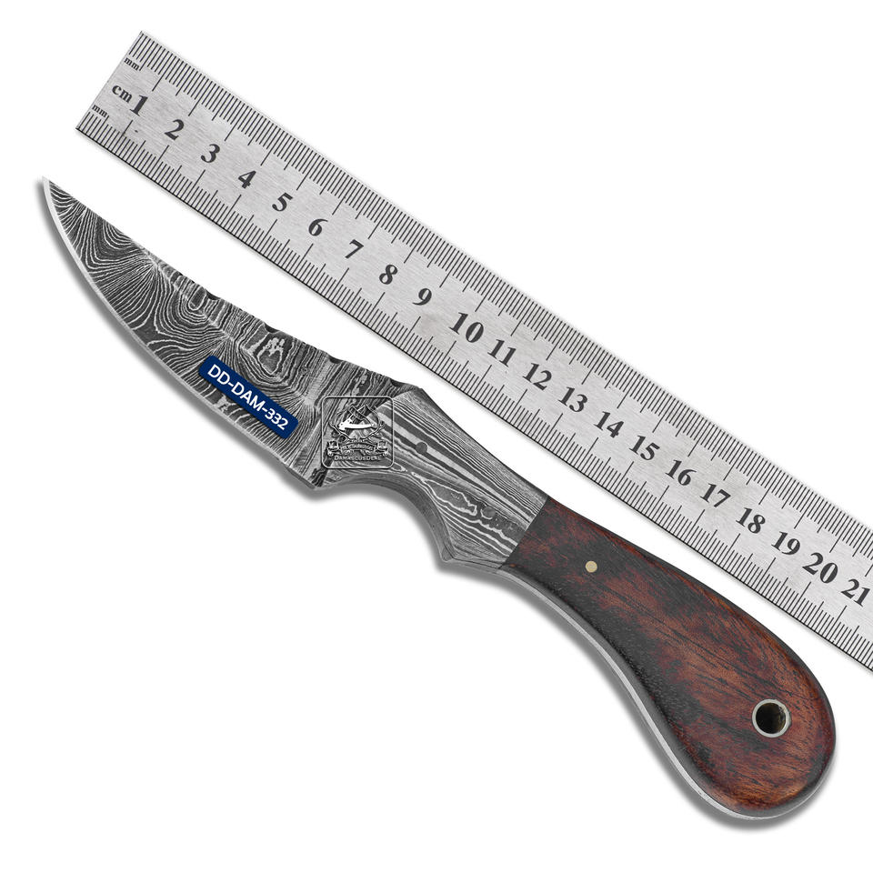 มีดล่าสัตว์ปรับแต่งได้ทำด้วยมือพร้อมใบมีดเหล็กดามัสกัสและปลอกหนังวัวชิงชัน