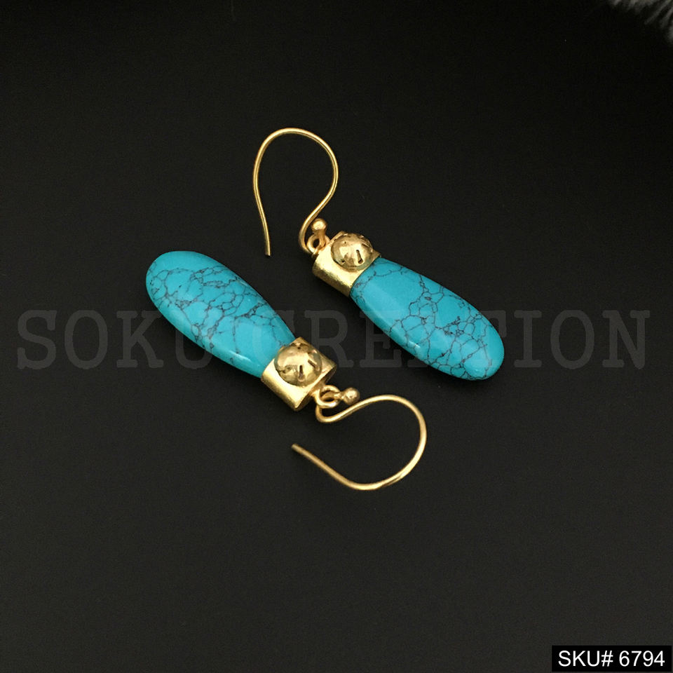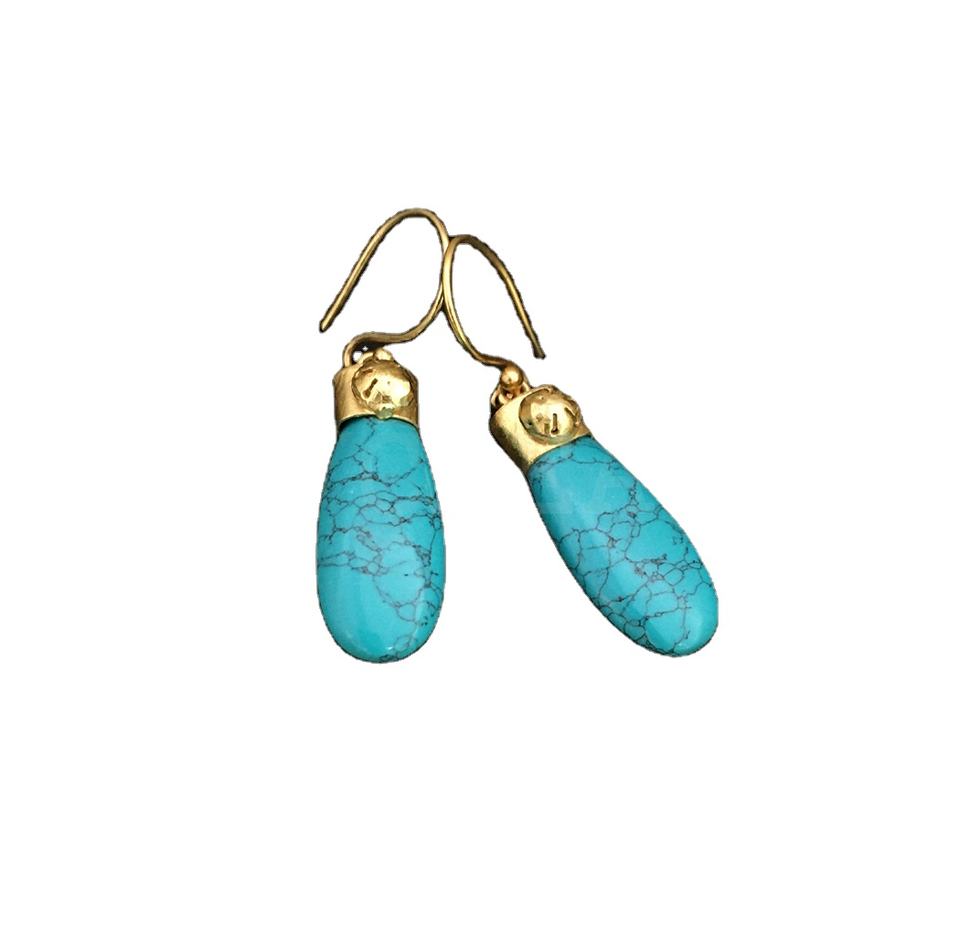 ต่างหูชุบทอง18K ทำด้วยมือพร้อมเครื่องประดับทองเหลืองเทอร์ควอยซ์ธรรมชาติสำหรับผู้หญิงและเด็กผู้หญิง