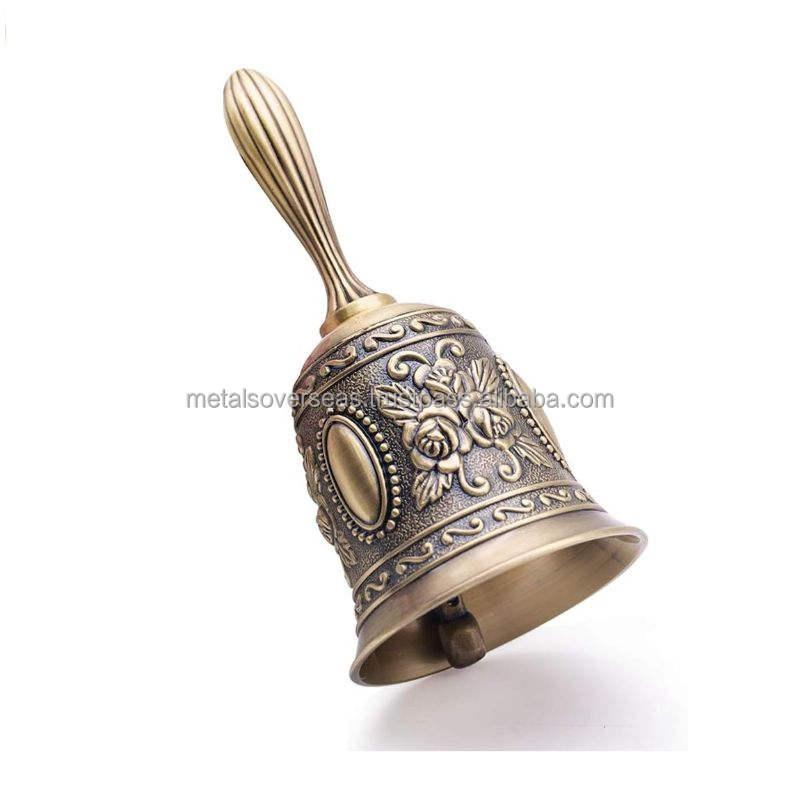 กระดิ่งมือทองเหลืองพร้อมที่จับงานหัตถกรรมโลหะสีทองสำหรับคริสต์มาสและของขวัญทางทะเล