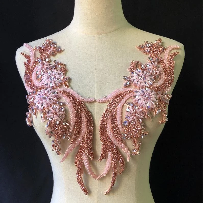 แผ่นผ้าโพลีเมชประดับพลอยเทียมปักลายดอกไม้งานเย็บทรงดอกไม้สำหรับผู้หญิงงานตามสั่งทำด้วยมือ