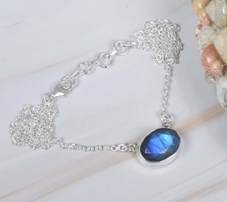 แฮนด์เมดตัดลาบราดอไรต์รูปไข่สีทอง925สร้อยคอเงินสเตอร์ลิงสำหรับงานหมั้นเดือนมีนาคมเครื่องประดับของขวัญคริสต์มาส