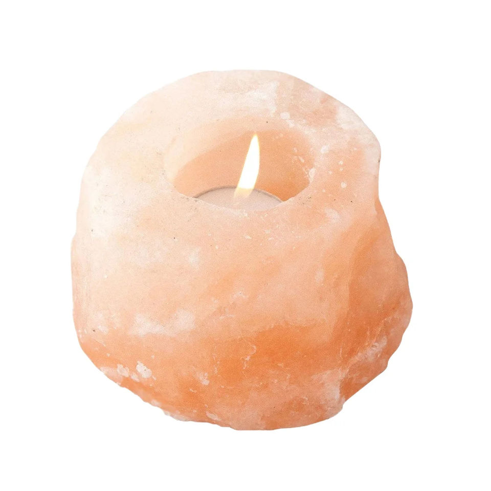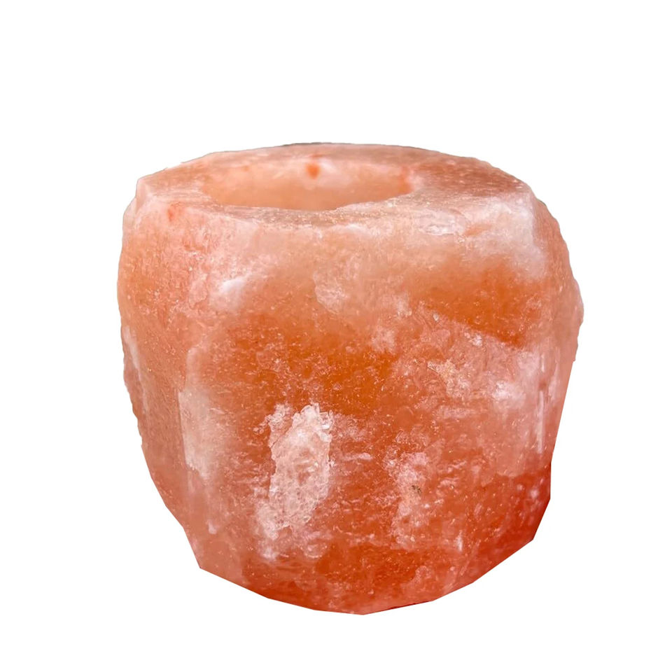 เชิงเทียนรูปทรงกระบอกทำมือจากคริสตัลสีชมพูธรรมชาติ ผลิตภัณฑ์งานฝีมือจากเกลือหิมาลัยแท้