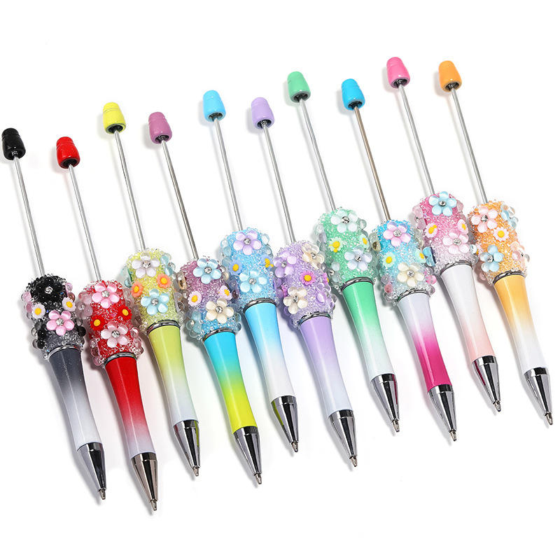 ปากกาลูกปัดทำมือ DIY ลายดอกไม้สร้างสรรค์ ปากกาทรายน้ำตาล ปากกาพลาสติกทรงกลมพร้อมหมึกสีดำแดง ขนาดหัวปากกา 1.0 มม. ขายส่ง