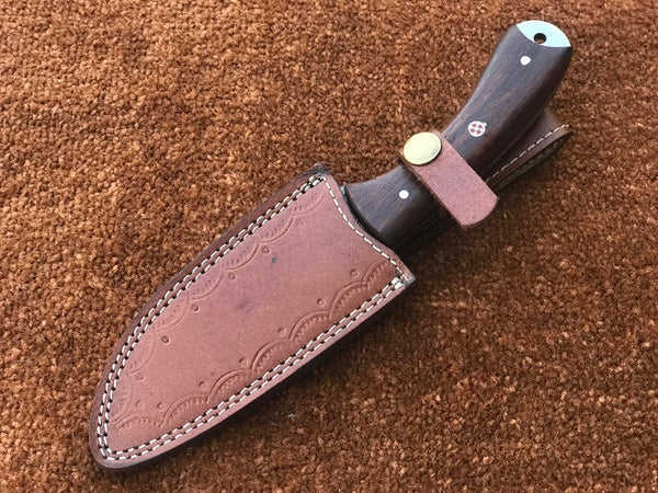 มีดล่าสัตว์เหล็กดามัสกัสทำมือ DIY ปรับแต่งได้ พร้อมด้ามไม้ สำหรับตั้งแคมป์กลางแจ้ง พร้อมปลอกหนัง OEM