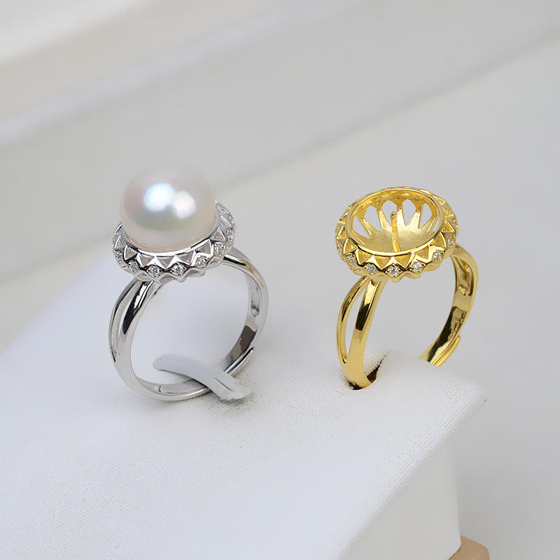 แหวนทำมือ DIY สำหรับผู้หญิง ประดับมุก 10-11 มม. ฐานเงินแท้ S925 ชุบทอง 14K ขนาด 3 มม.