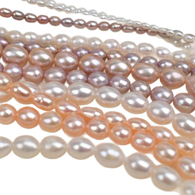 อุปกรณ์ทำสร้อยคอ DIY ทำมือ ไข่มุกน้ำจืดธรรมชาติ รูปทรงเมตร ขนาด 2-9 มม. สีชมพูอ่อน แสงสว่าง ไข่มุกหลวมแบบเจาะรู
