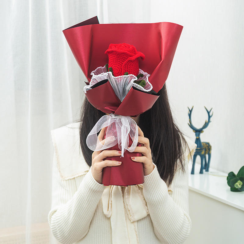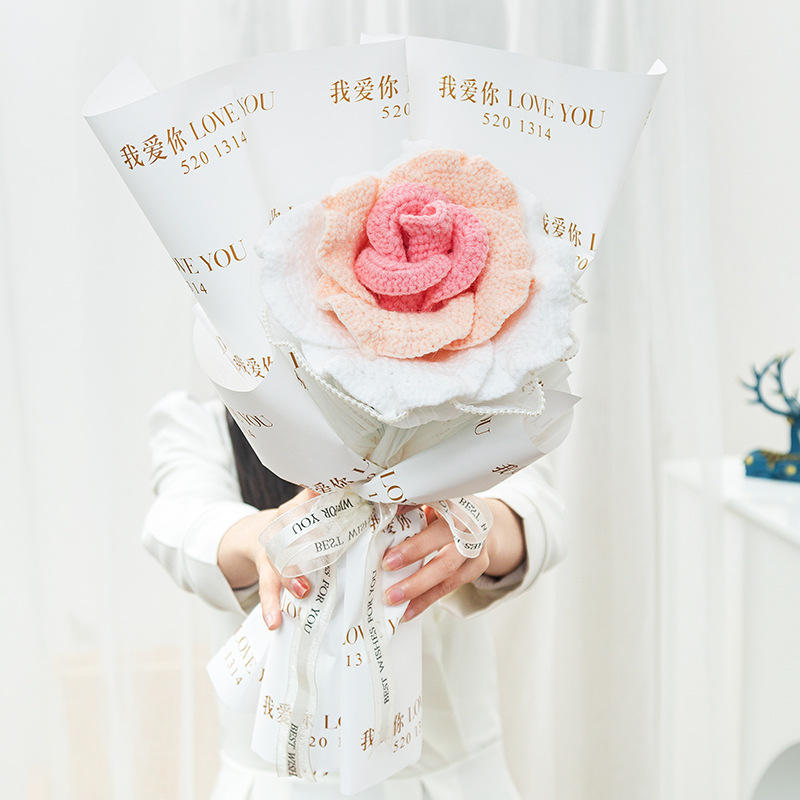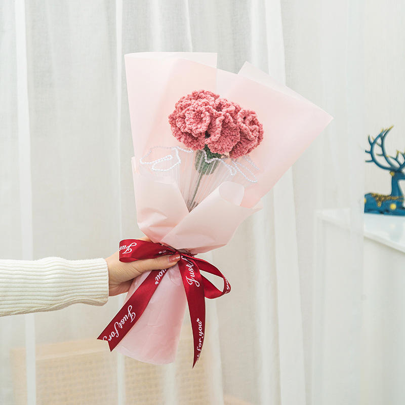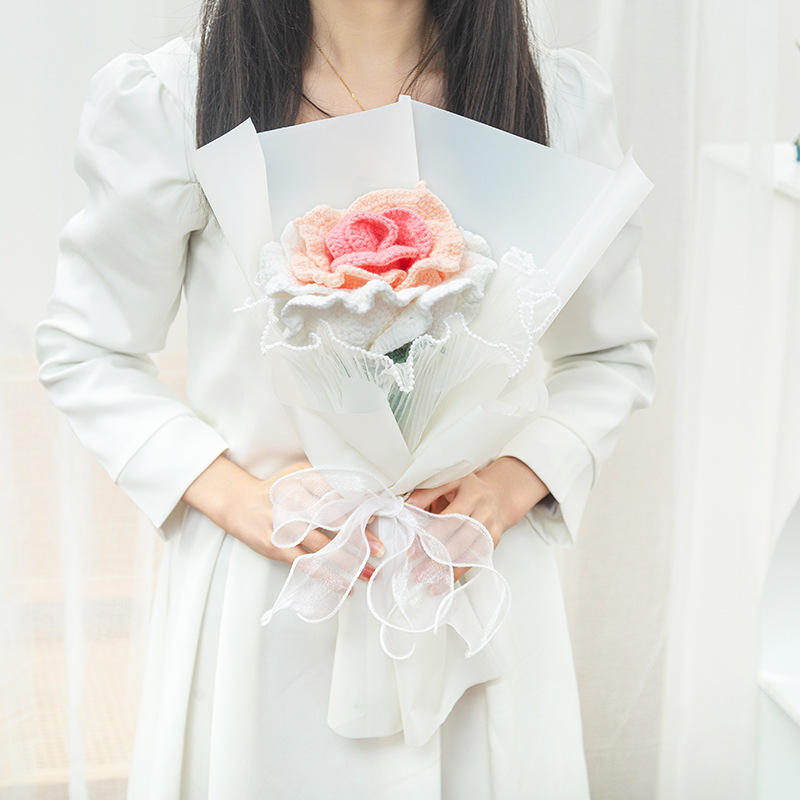 สินค้าแฮนด์เมดทำมือวัสดุแบบทำมือด้วยไหมพรมถักลายดอกกุหลาบไทยช่อดอกไม้สำเร็จรูปของขวัญสำหรับแฟนสาว
