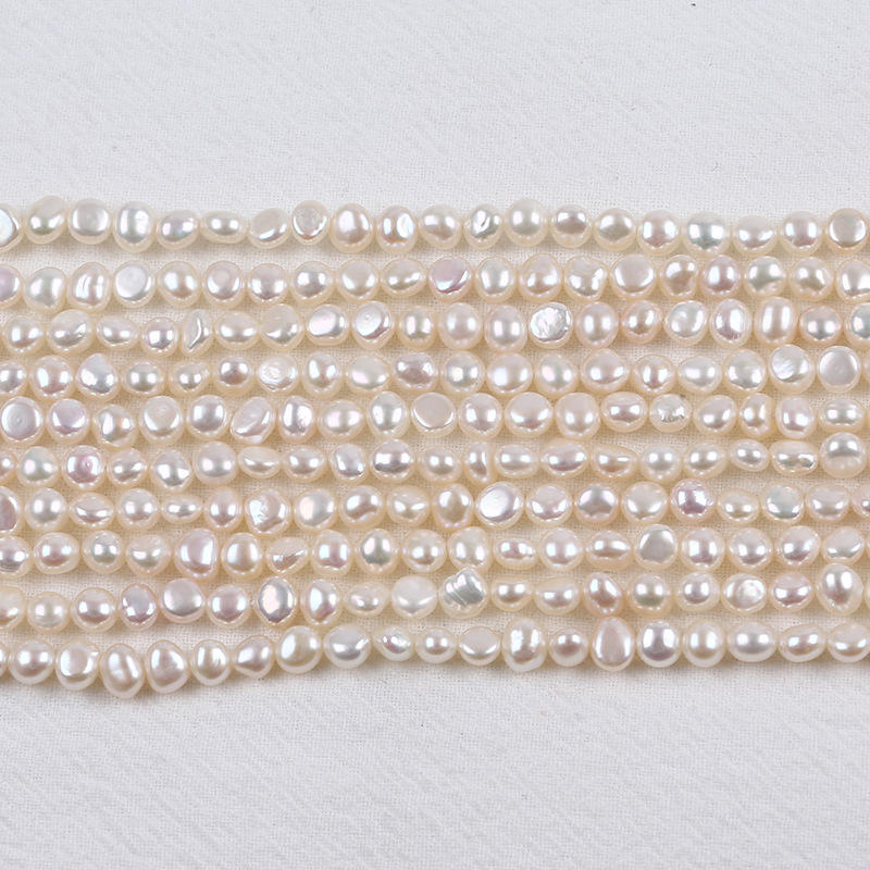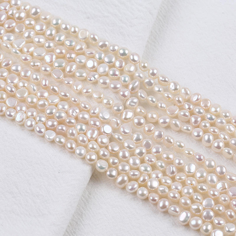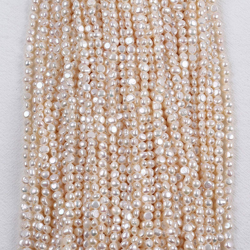 ลูกปัดมุกน้ำจืดธรรมชาติทำมือ DIY ขนาด 4-5 มม. แบบสองด้าน เงา ด้านขาว มีรู วัสดุกึ่งสำเร็จรูป ลูกปัดแบบหลวม