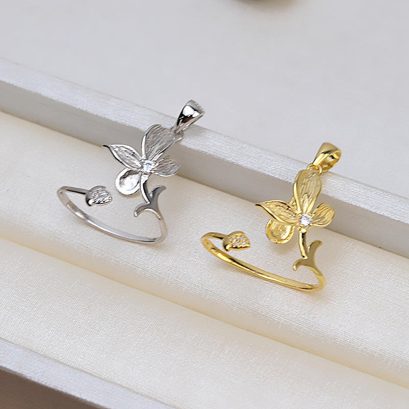 จี้ผีเสื้อเงินแท้ S925 งานแฮนด์เมด สไตล์บาโรก พร้อมสร้อยไข่มุกทรงผู้หญิง 1434 ไข่มุกเม็ดเดี่ยว สำหรับทำเครื่องประดับ