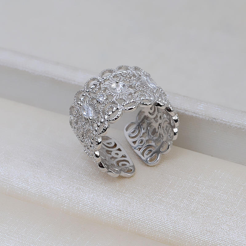 แหวนเงินแท้ S925 ทำมือ ดีไซน์แบบเปิด สามารถถอดเปลี่ยนได้ แหวนลูกไม้สไตล์วังสำหรับผู้หญิง ชุดเปล่าสำหรับใส่ไข่มุก 5-7 เม็ด รุ่น 2847 ชุบทอง