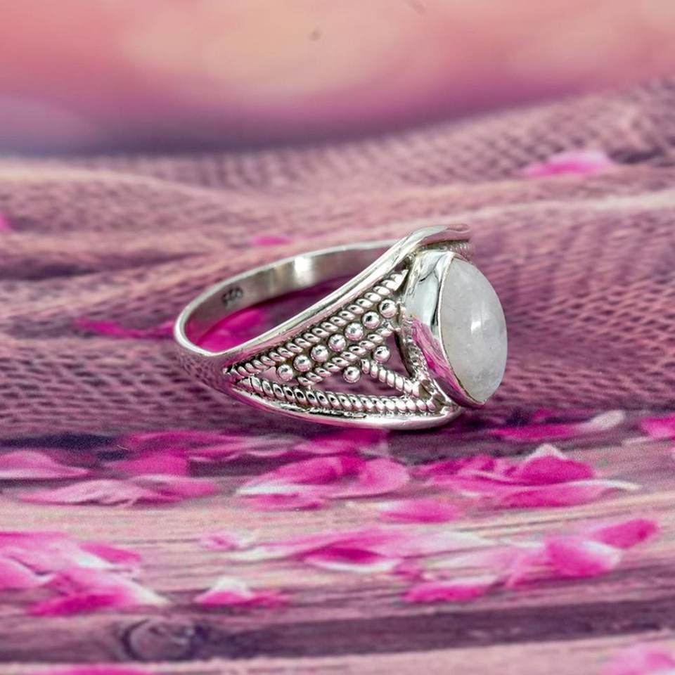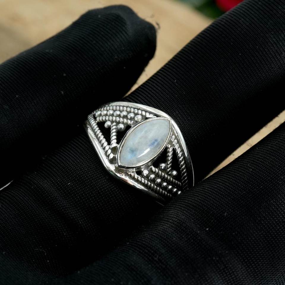 ทำด้วยมืออัญมณีมูนสโตนแหวนซ้อนกันได้เงินสเตอร์ลิงธรรมชาติเครื่องประดับชั้นดีสำหรับผู้หญิงของขวัญที่สมบูรณ์แบบสำหรับเธอ