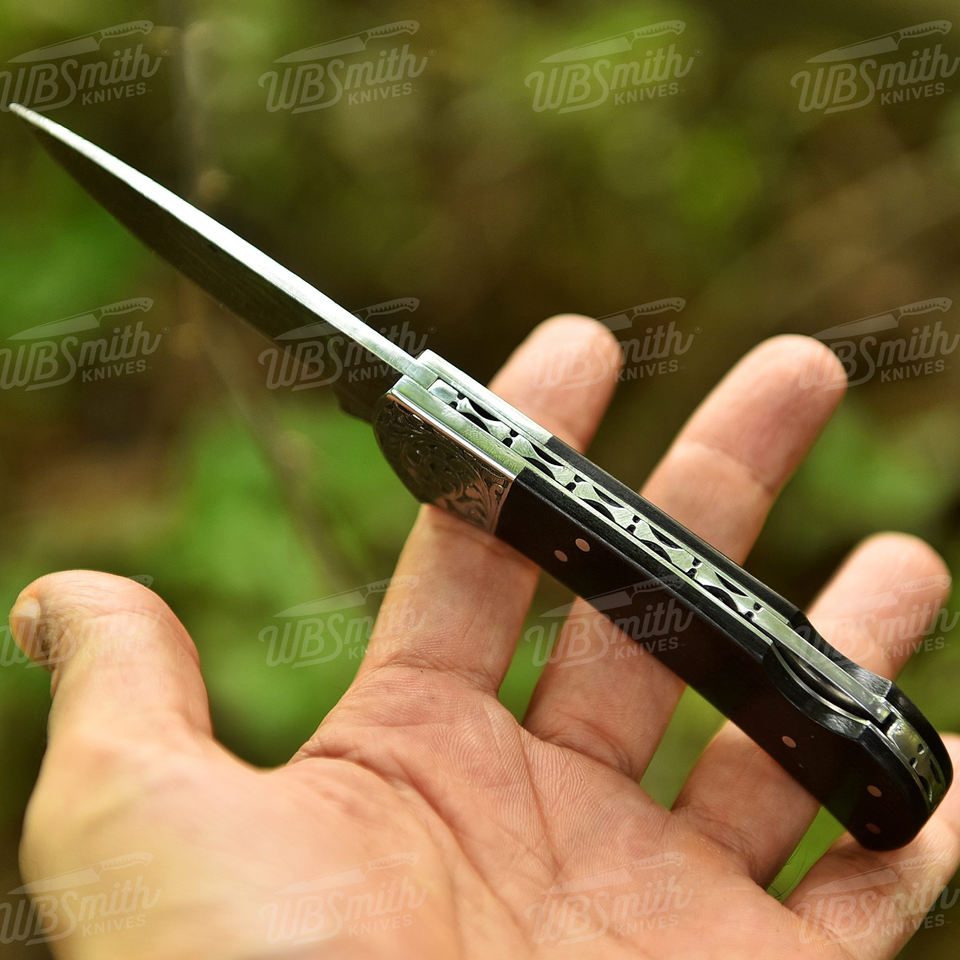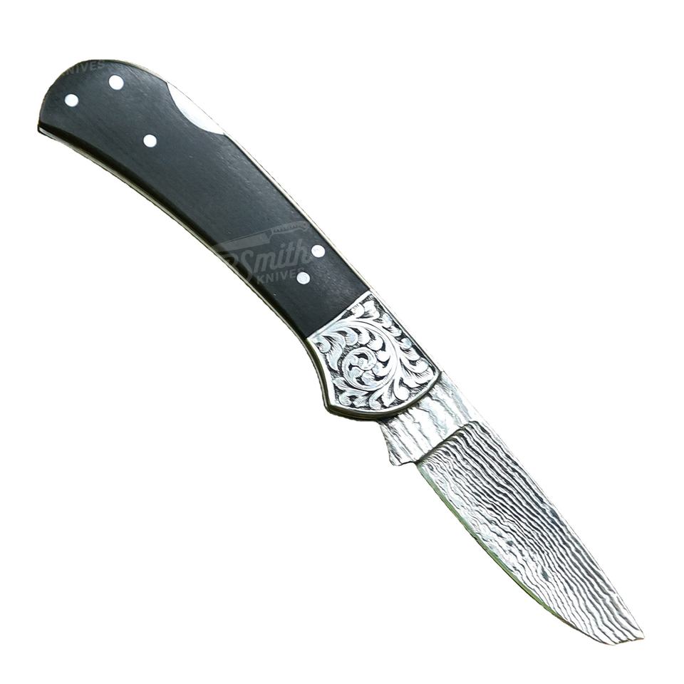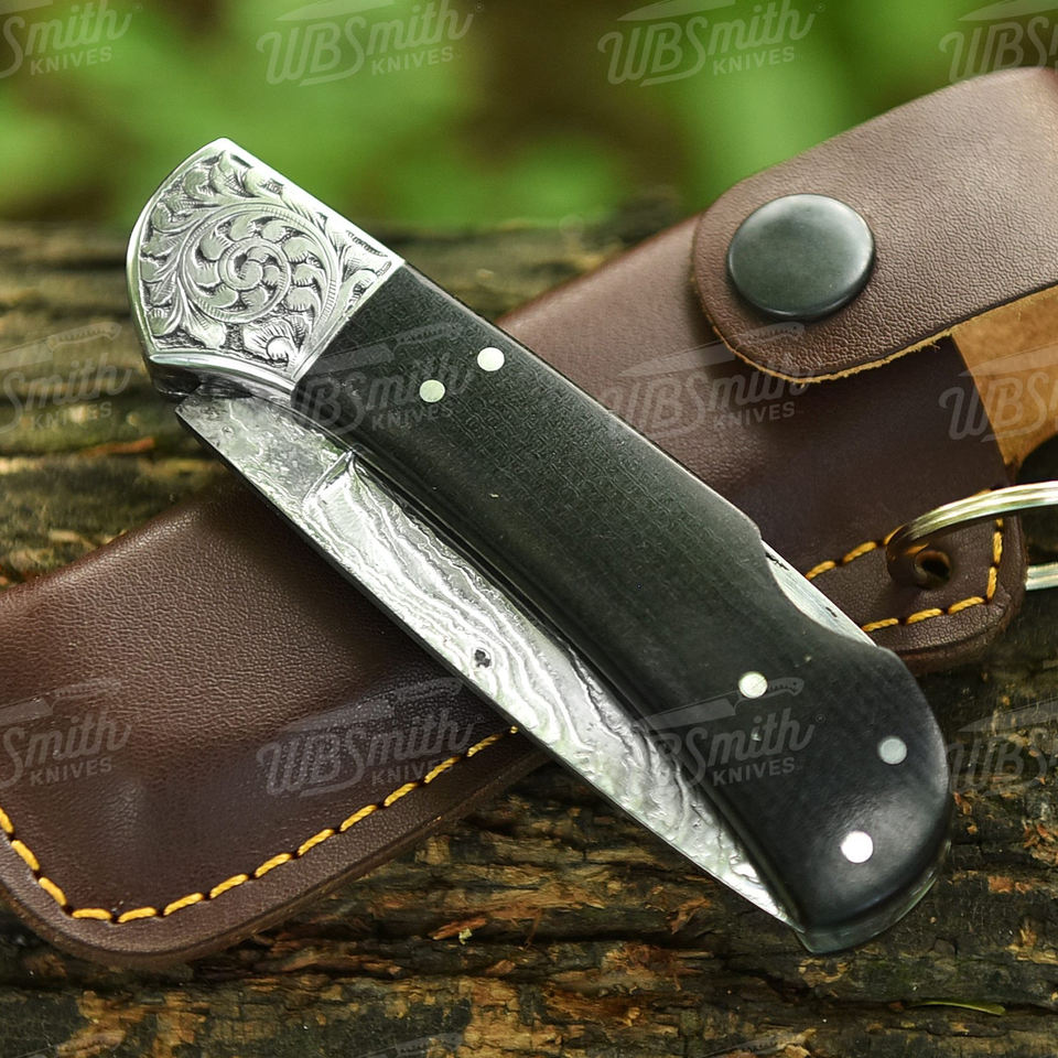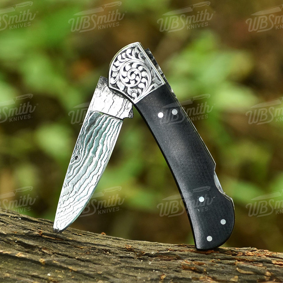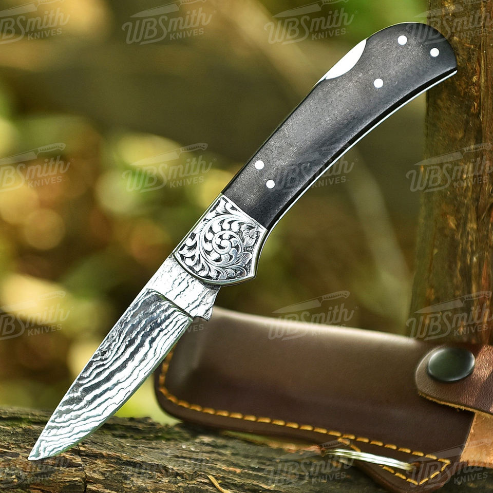 มีดพับใบมีดเหล็กดามัสกัสทำมือ พร้อมด้ามจับแบบกำหนดเอง OEM มีดพกพาสำหรับตั้งแคมป์