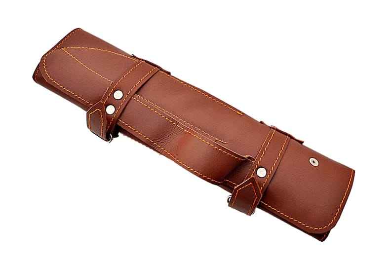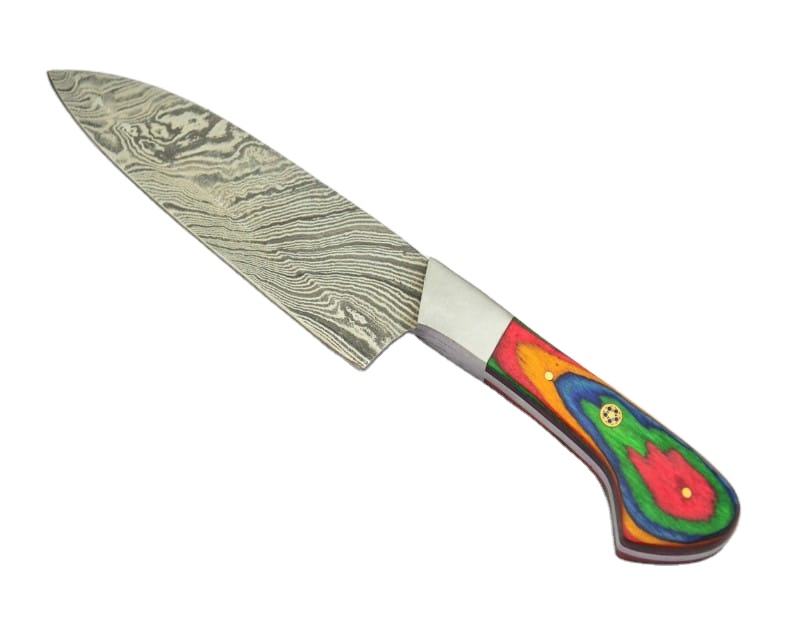 ชุดมีดทำครัวเหล็กดามัสกัสทำด้วยมือ5ชิ้นชุดมีดเชฟดามัสกัสด้ามไม้พร้อมกระเป๋าหนัง