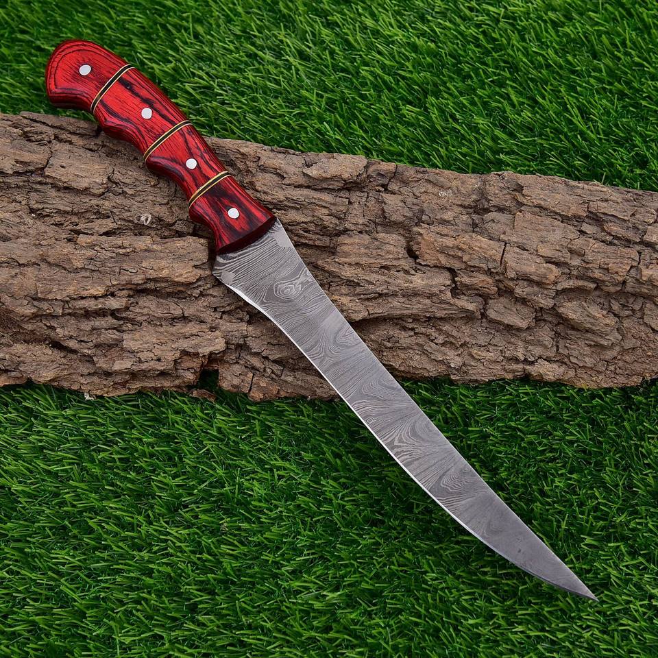 Handmade Damascus Steel Fillet Fishing Knife with Flexible Blade Customizable Pukka Wood Handle Special OEM Personalized Gift
