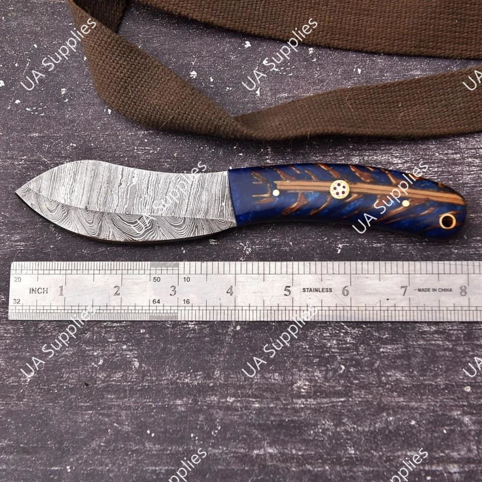 มีดทำมือเหล็กดามัสกัส ใบมีดคงที่ สำหรับล่าสัตว์และตั้งแคมป์ ด้ามจับทำจากเรซิ่นลายโคนต้นสน ดีไซน์พิเศษ รับผลิตตามแบบ ODM พร้อมซองหนังอเนกประสงค์