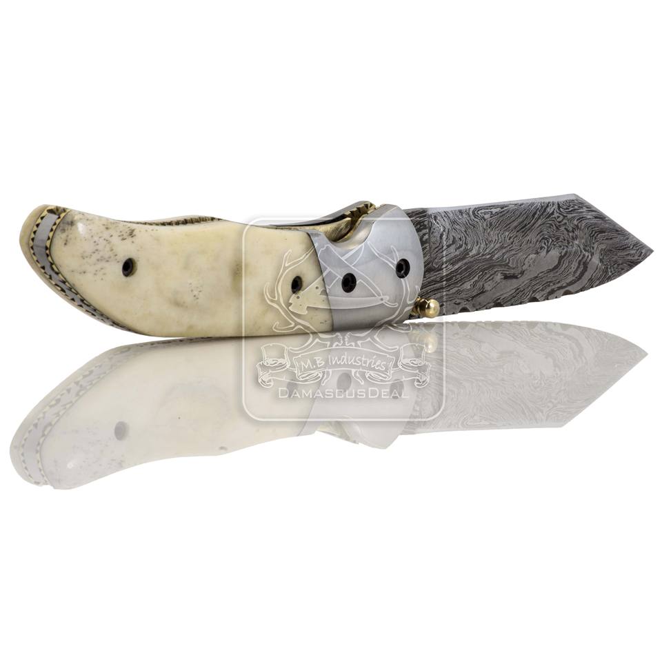 DD-FK-615มีดพับเหล็กดามัสกัสแบบแฮนด์เมดมีดพกใช้งานกลางแจ้งสำหรับล่าสัตว์ในค่าย