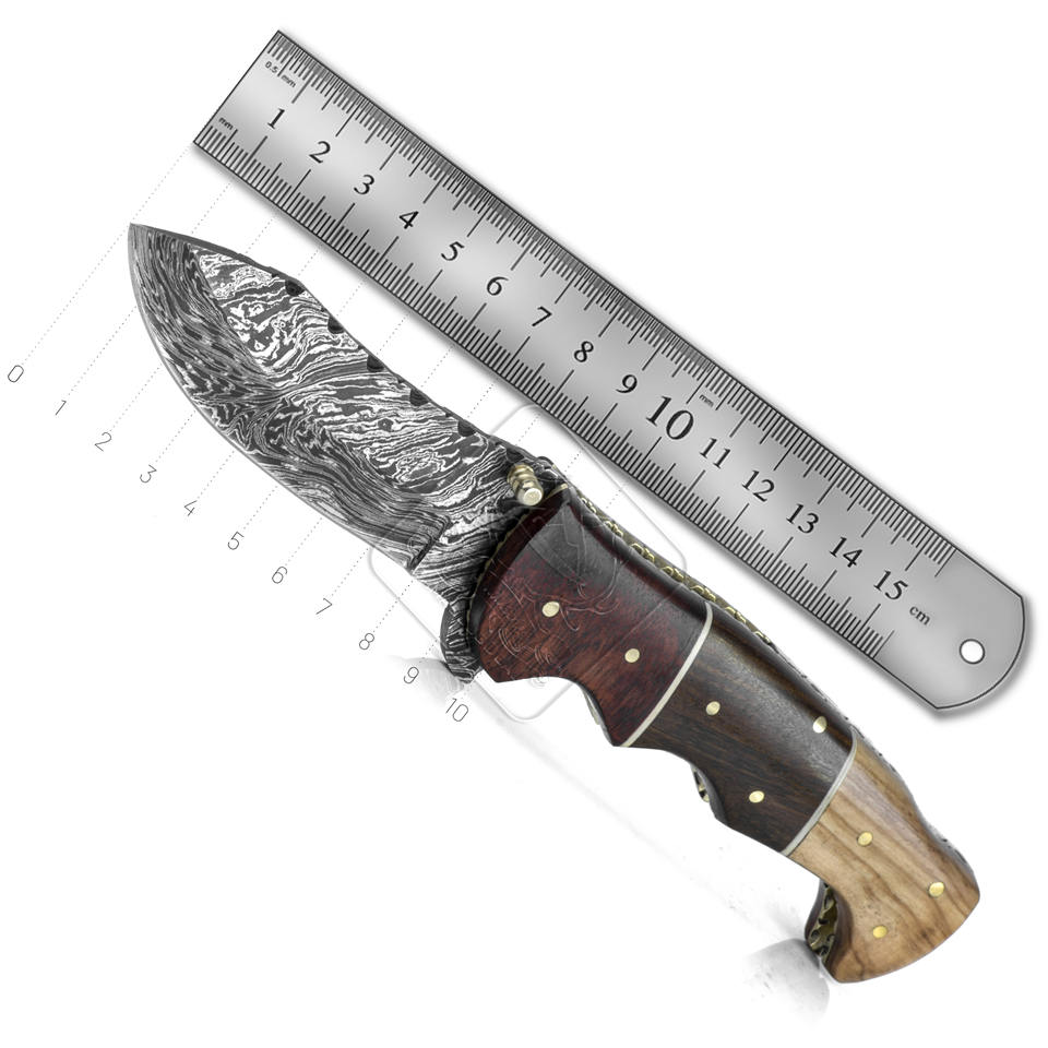 Handle Material:Olive Wood and Buffalo Horn with Damascus Steel Bolsters