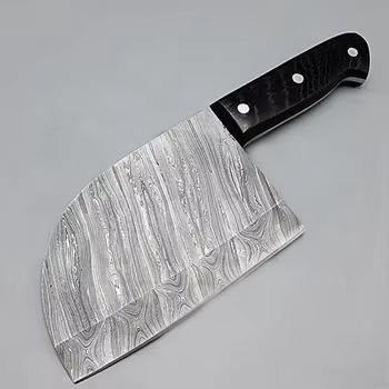 มีดทำครัวเหล็กดามัสกัสแท้ งานแฮนด์เมด ด้ามเต็ม สำหรับหั่นเนื้อและผัก พร้อมปลอกหนัง