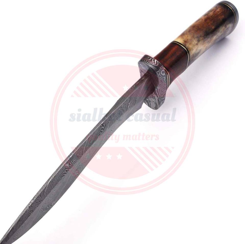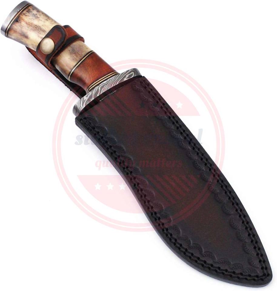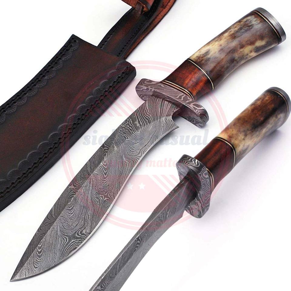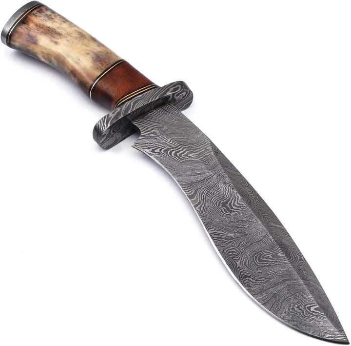 มีดล่าสัตว์เหล็กดามัสกัสทำด้วยมือมีดล่าสัตว์กลางแจ้งใบมีดคงที่สำหรับตั้งแคมป์