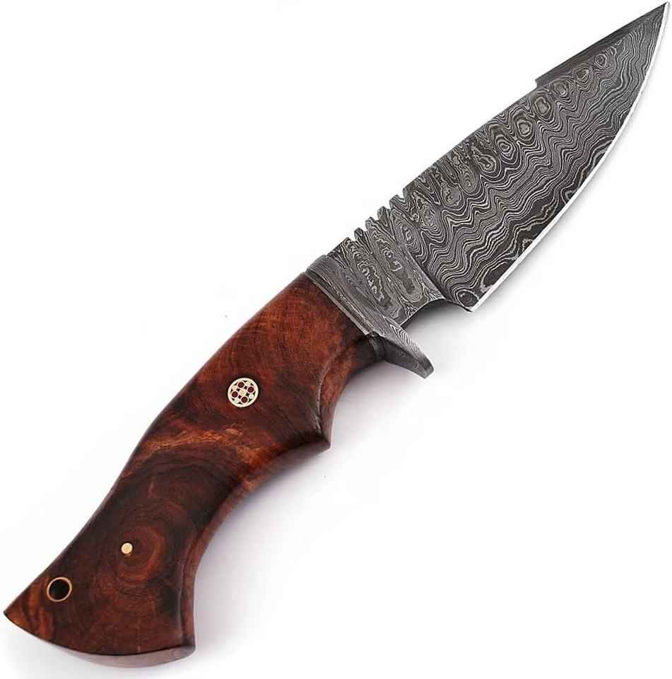 มีดล่าสัตว์เหล็กดามัสกัสแฮนด์เมดมีดด้ามไม้กุหลาบและปลอกหนังชั้นดีของขวัญสำหรับคนขายมีดยอดนิยม