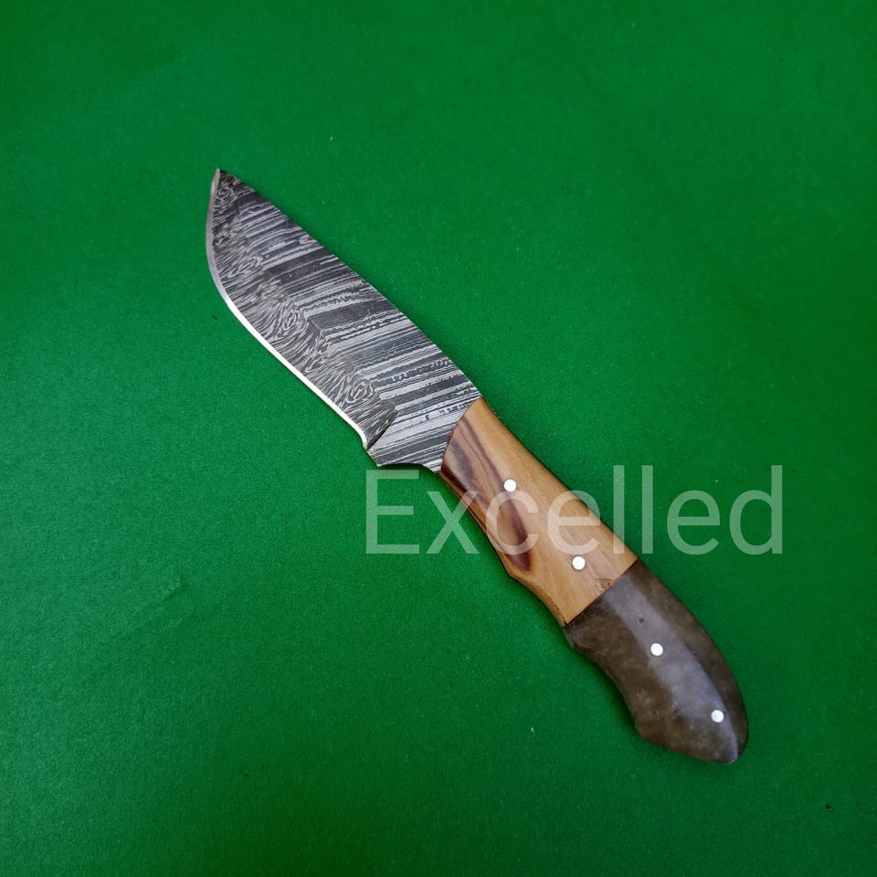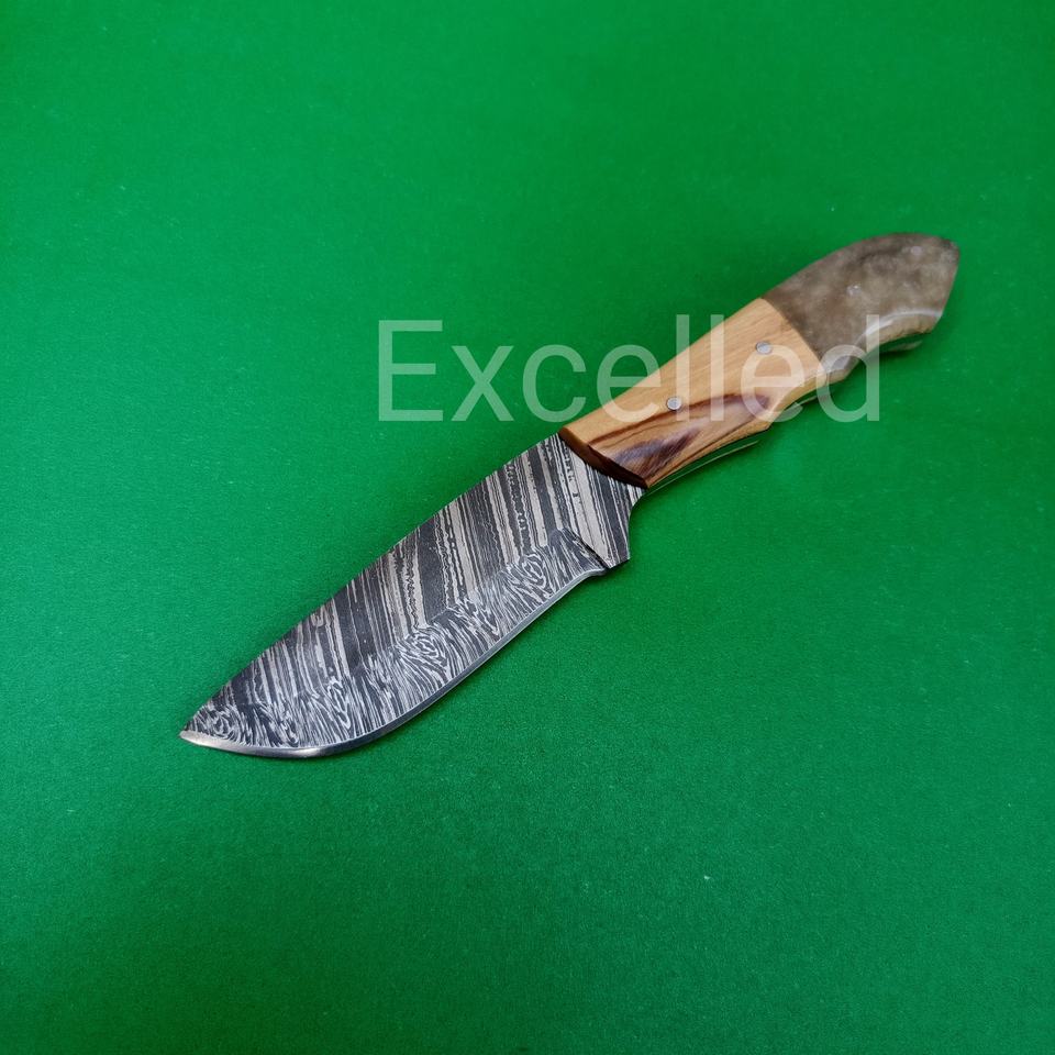 มีดสกินเนอร์เหล็กดามัสกัสทำด้วยมือมีดกลางแจ้งออกแบบได้ตามต้องการทำจากไม้ปาคคาและด้ามจับเรซิน