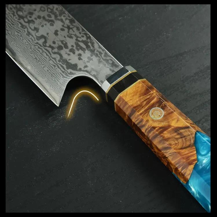 ชุดมีดทำครัวเหล็กดามัสกัสทำด้วยมือ7-Pcs ถังเต็มพร้อมถุงม้วนหนังสำหรับการเตรียมผักและการเหลา