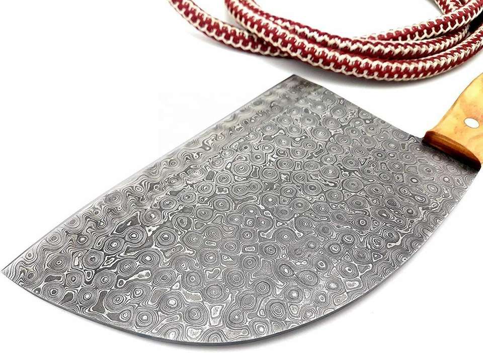 มีดปังตอเหล็กดามัสกัสทำมือสำหรับครัว มีดเชฟมืออาชีพสำหรับสับเนื้อคมกริบ มีดแล่เนื้อคมกริบ มีบริการสลักโลโก้ตามสั่ง